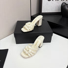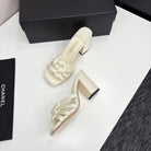 CC 25 Camellia Open Heel Mule Sandals 90mm Ivory Sheepskin And Fabric 368840