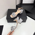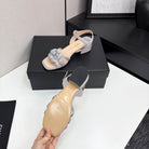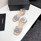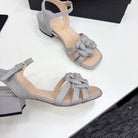 CC 25 Camellia Open Heel Sandals 50mm Grey Beige Sheepskin And Fabric 368814