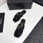CC 25 Camellia Thong Sandals Black Sheepskin And Fabric 368838