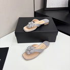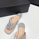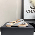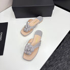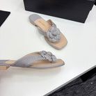 CC 25 Camellia Thong Sandals Grey Beige Sheepskin And Fabric 368837