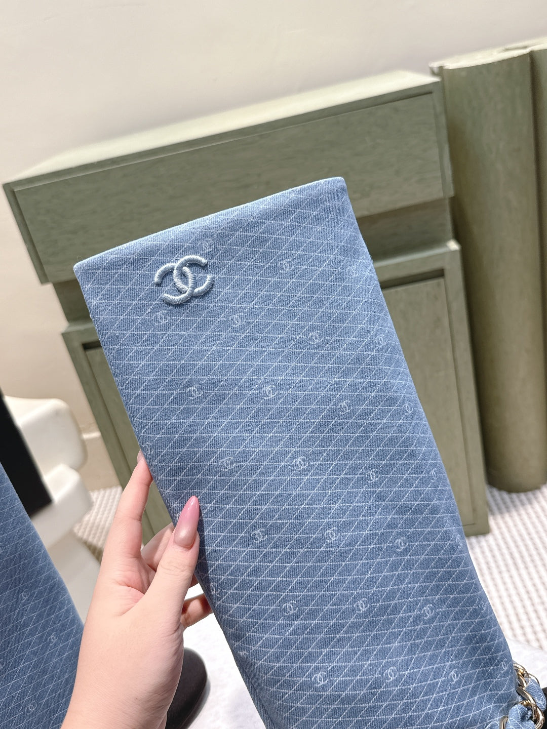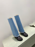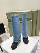 CC 25 Long Boot Blue Black Denim Fabric Calfskin 515271