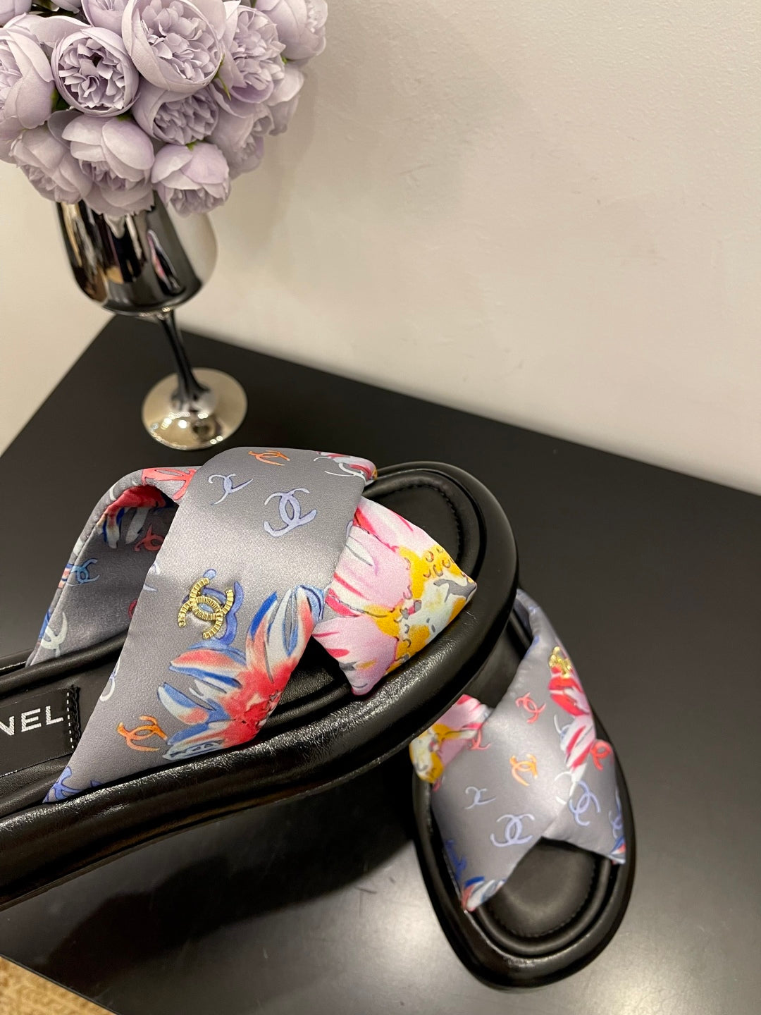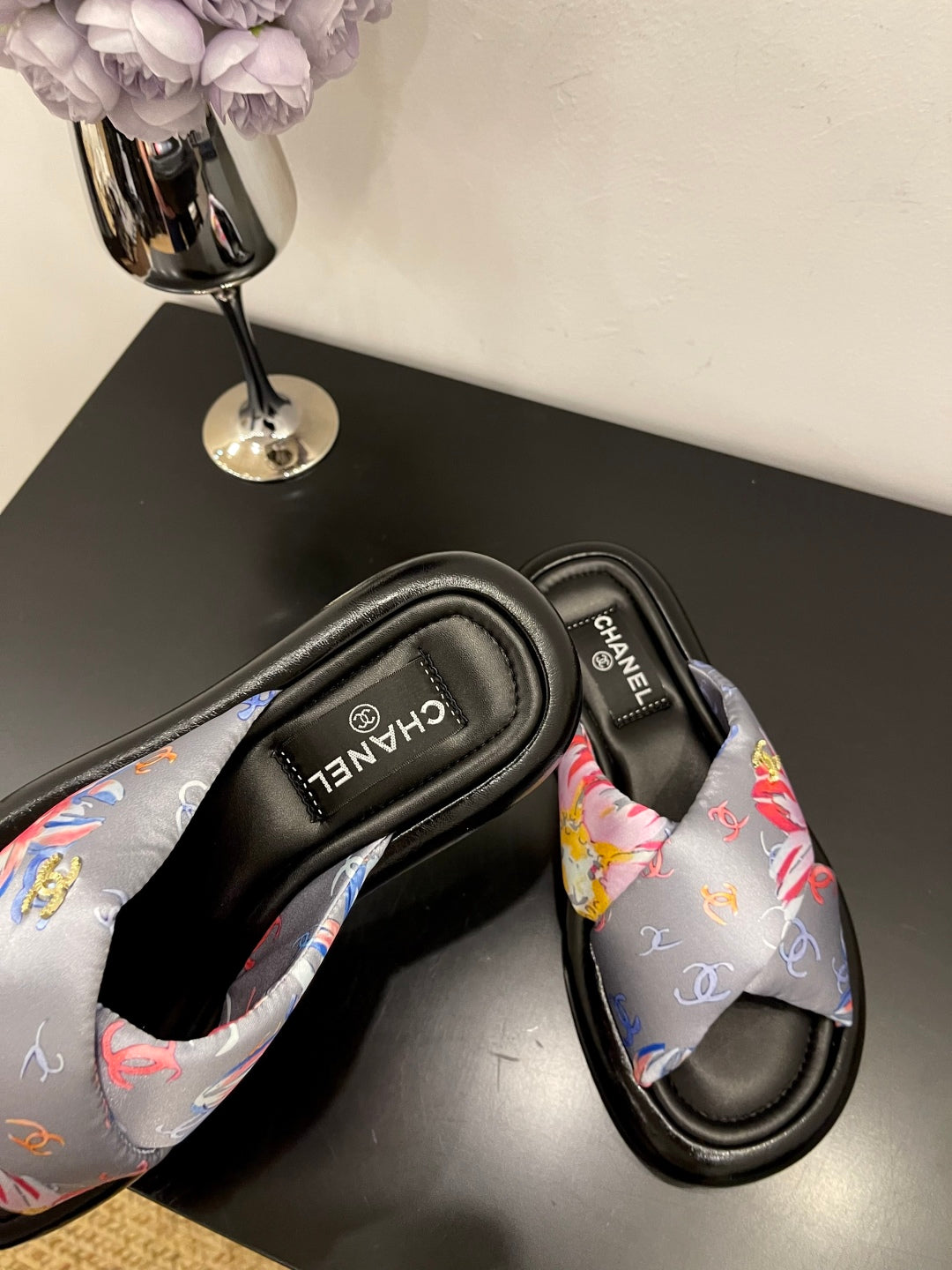 CC 25 Platform Slide Grey Cloth Sheepskin 334739
