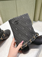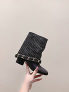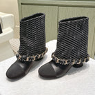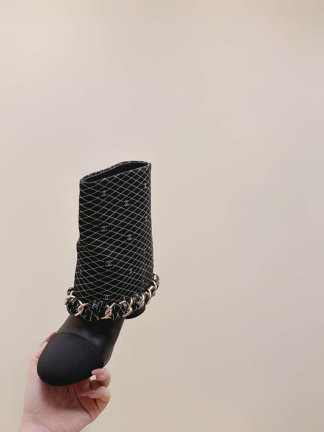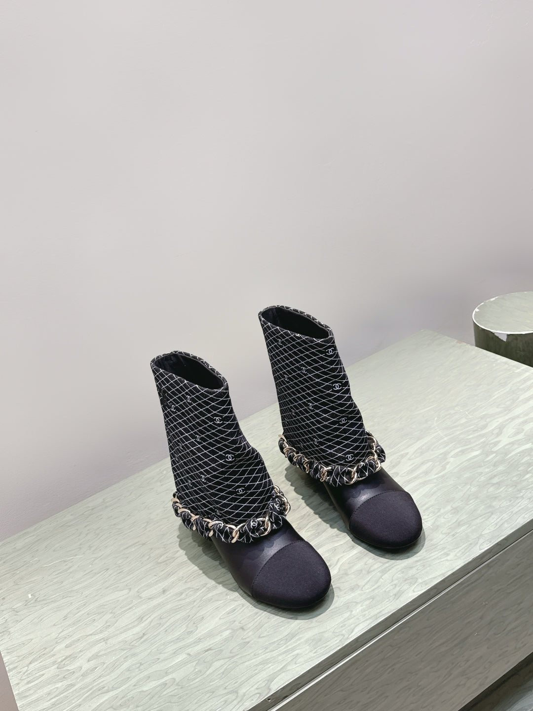 CC 25 Short Boot Black Denim Fabric Calfskin 515267