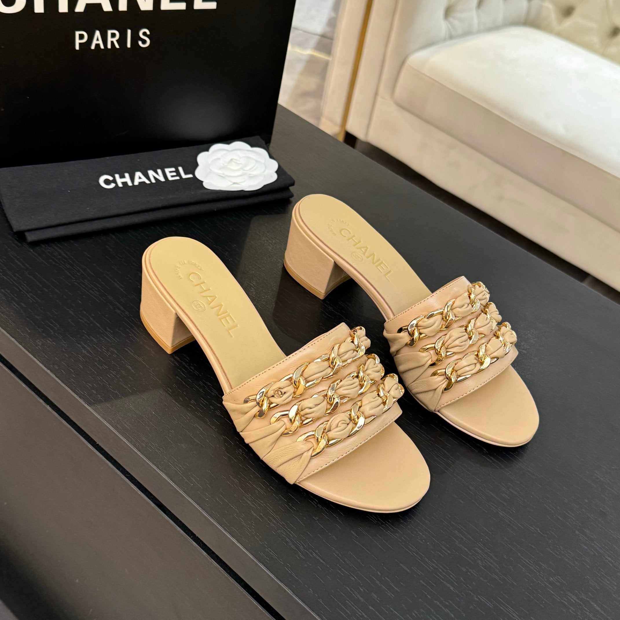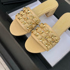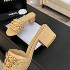CC 25B Heel Mule Sandals 50mm Beige Sheepskin With Chain 373818