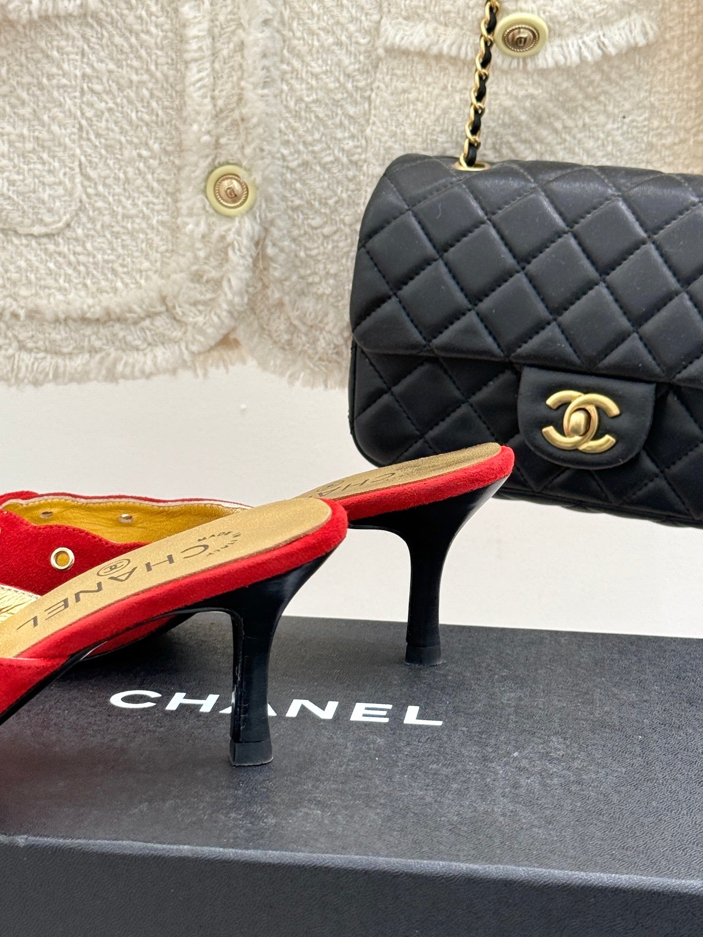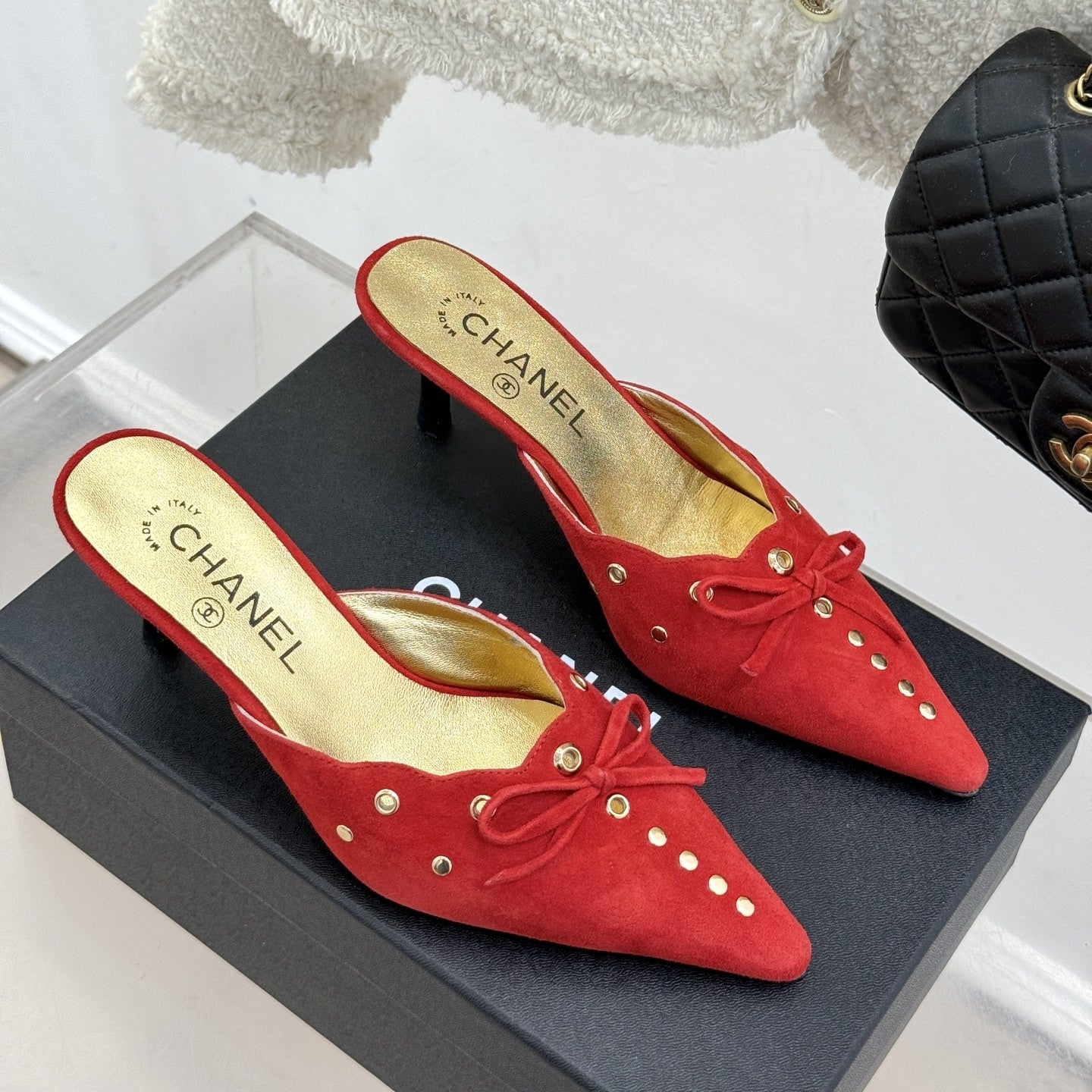 CC 25C Bowknot Pointed High Heel Half Slippers 60mm Red Suede 265658