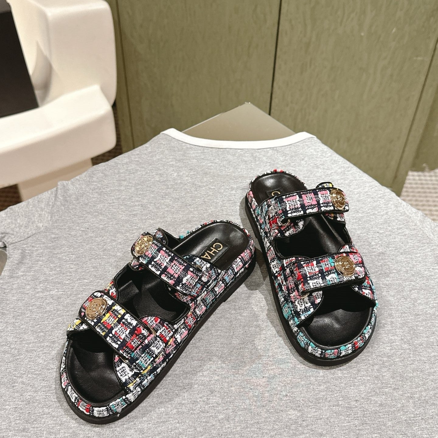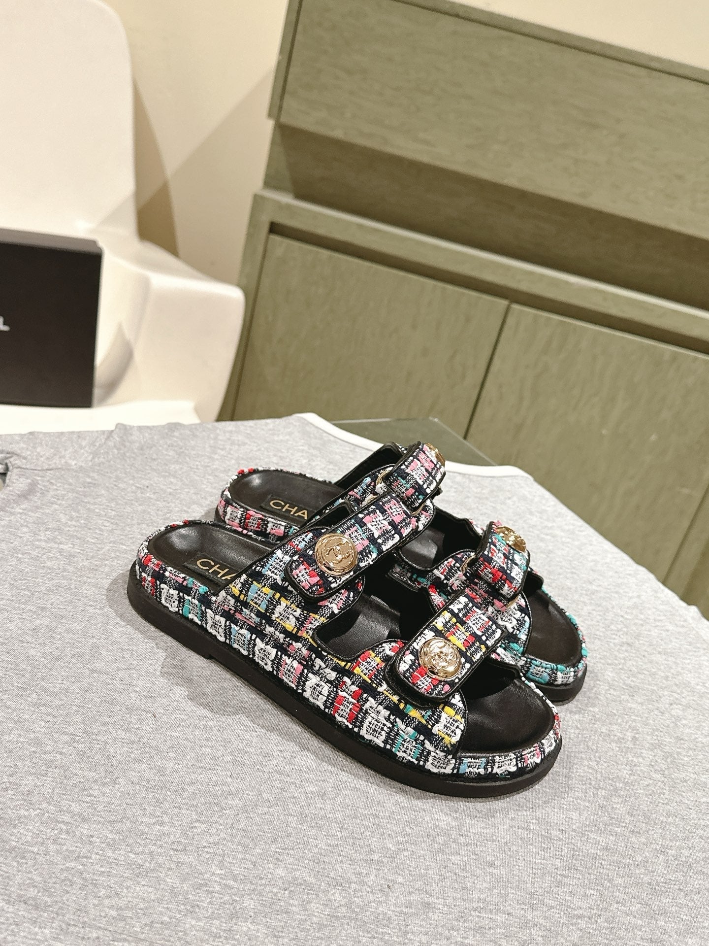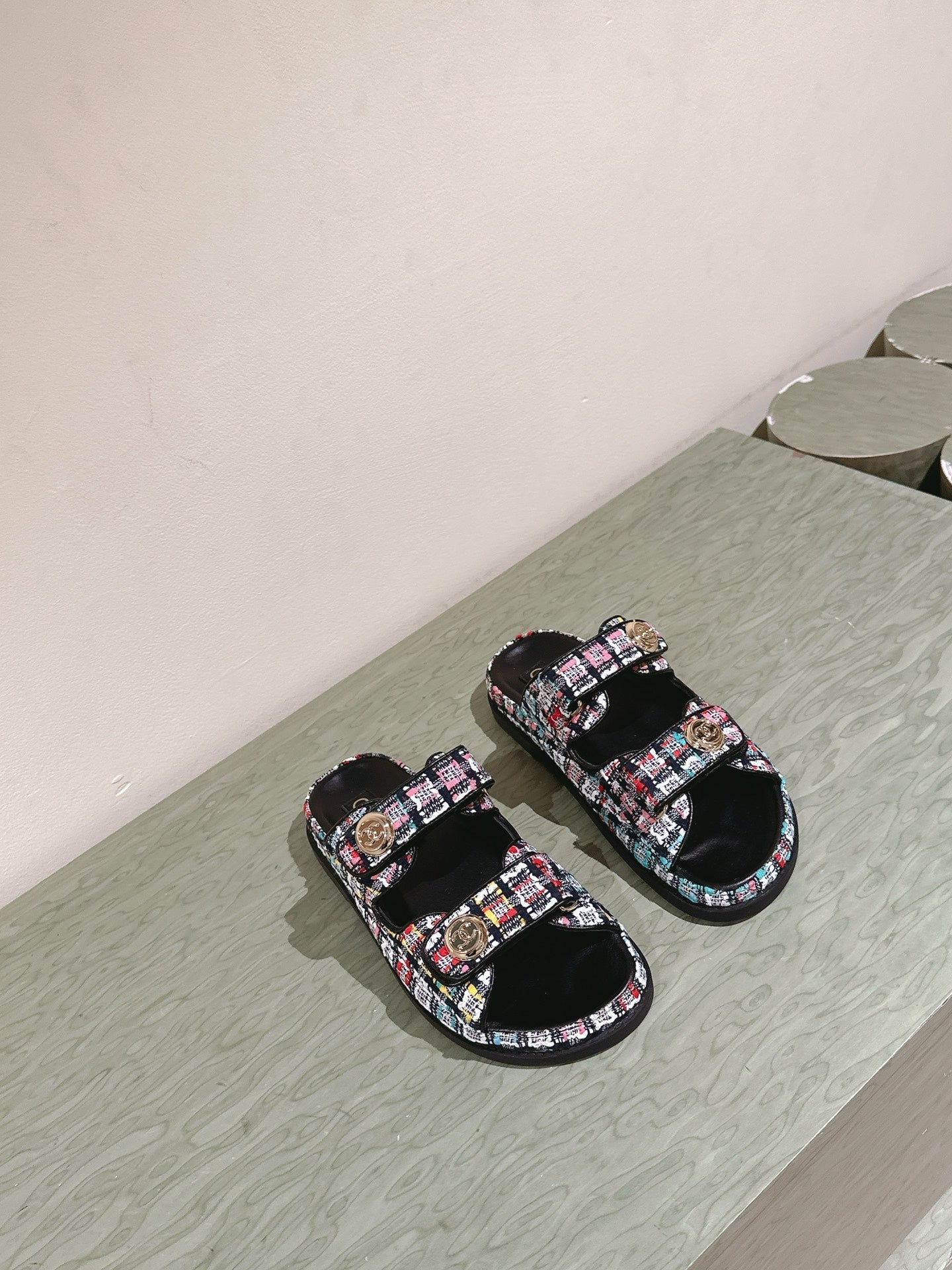 CC 25C Dad Sandals Mule Black Colorful Tweed 462230