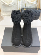 CC 25K Double C Colorblock Furry Snow Boots Black Suede 512069