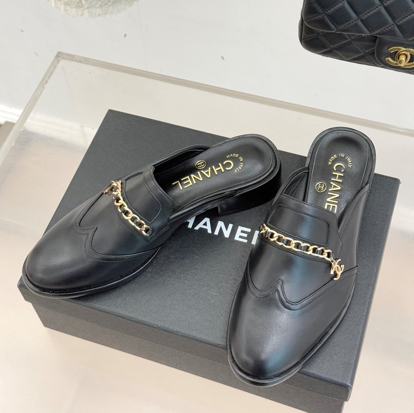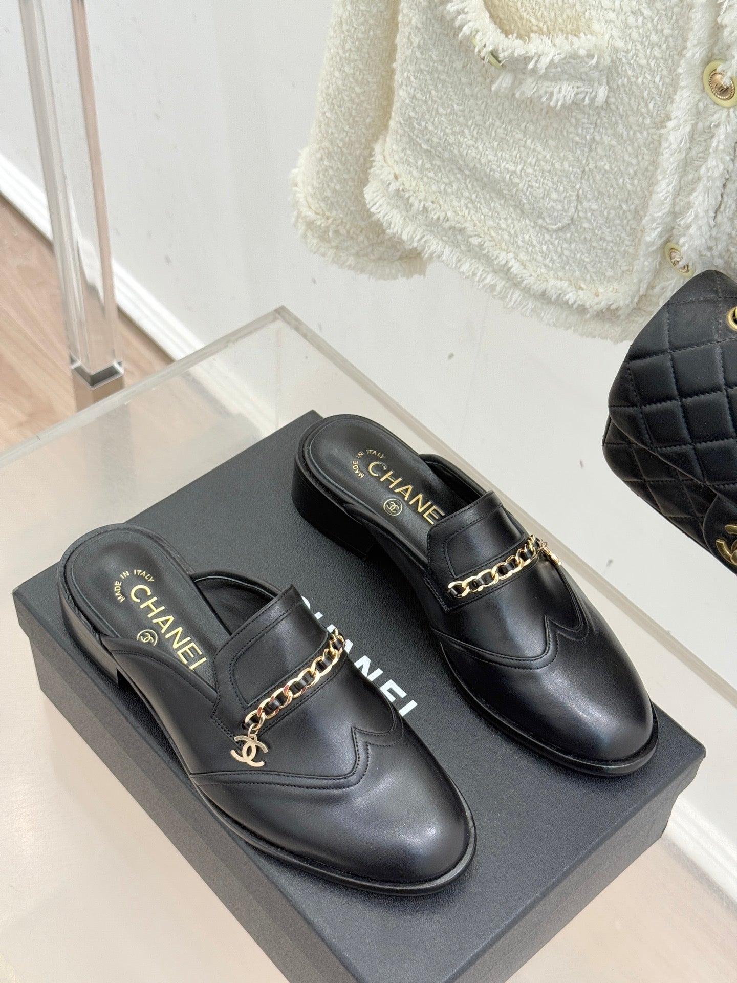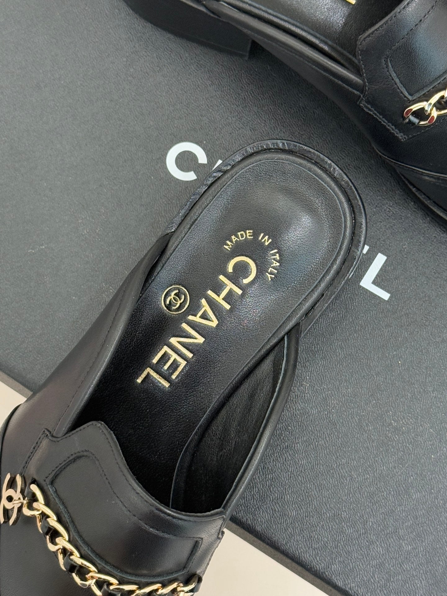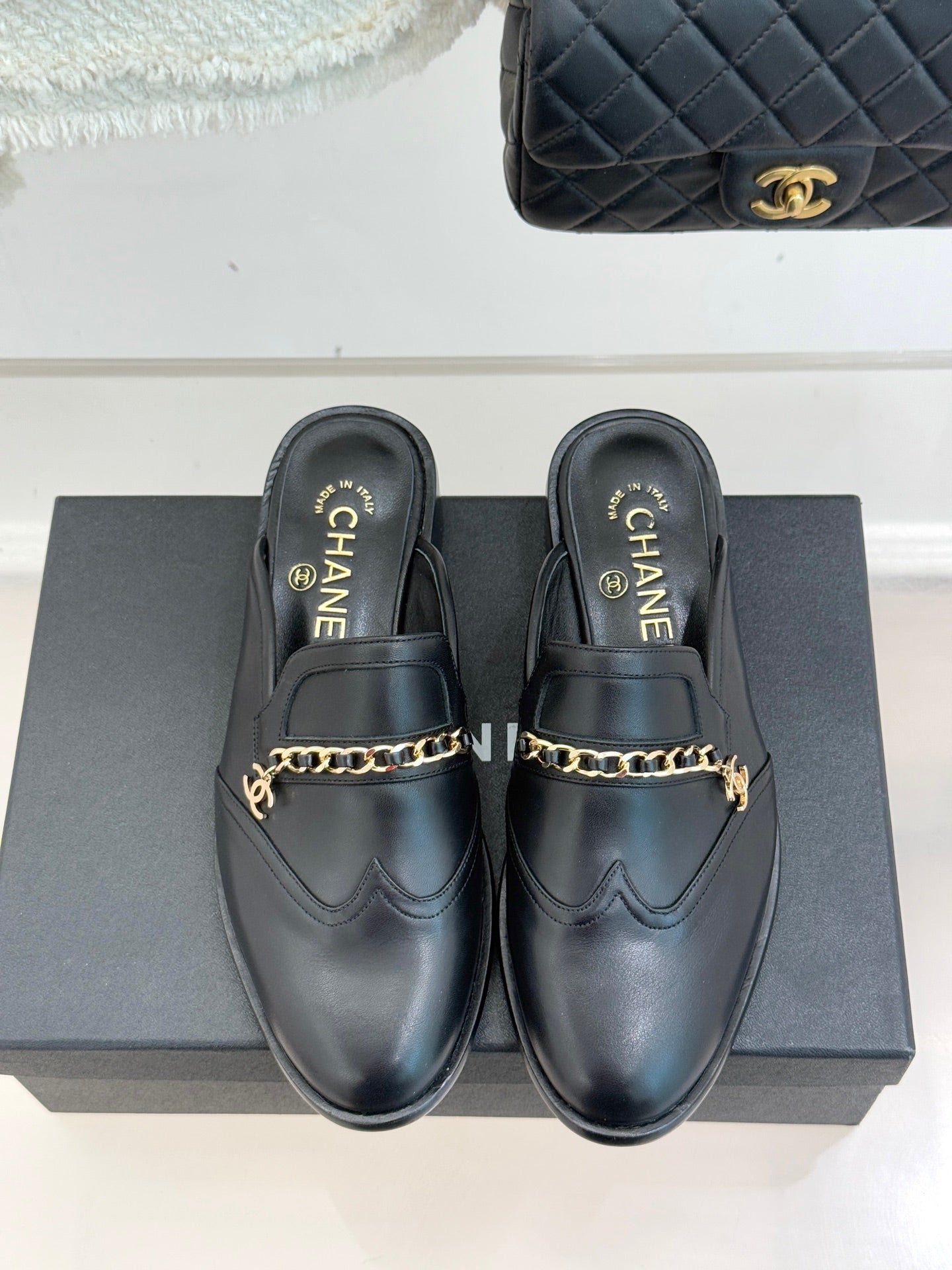 CC 25s Double C Buckle Half-Length Slippers Black Calfskin 557701
