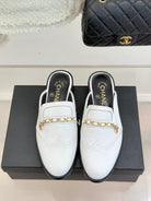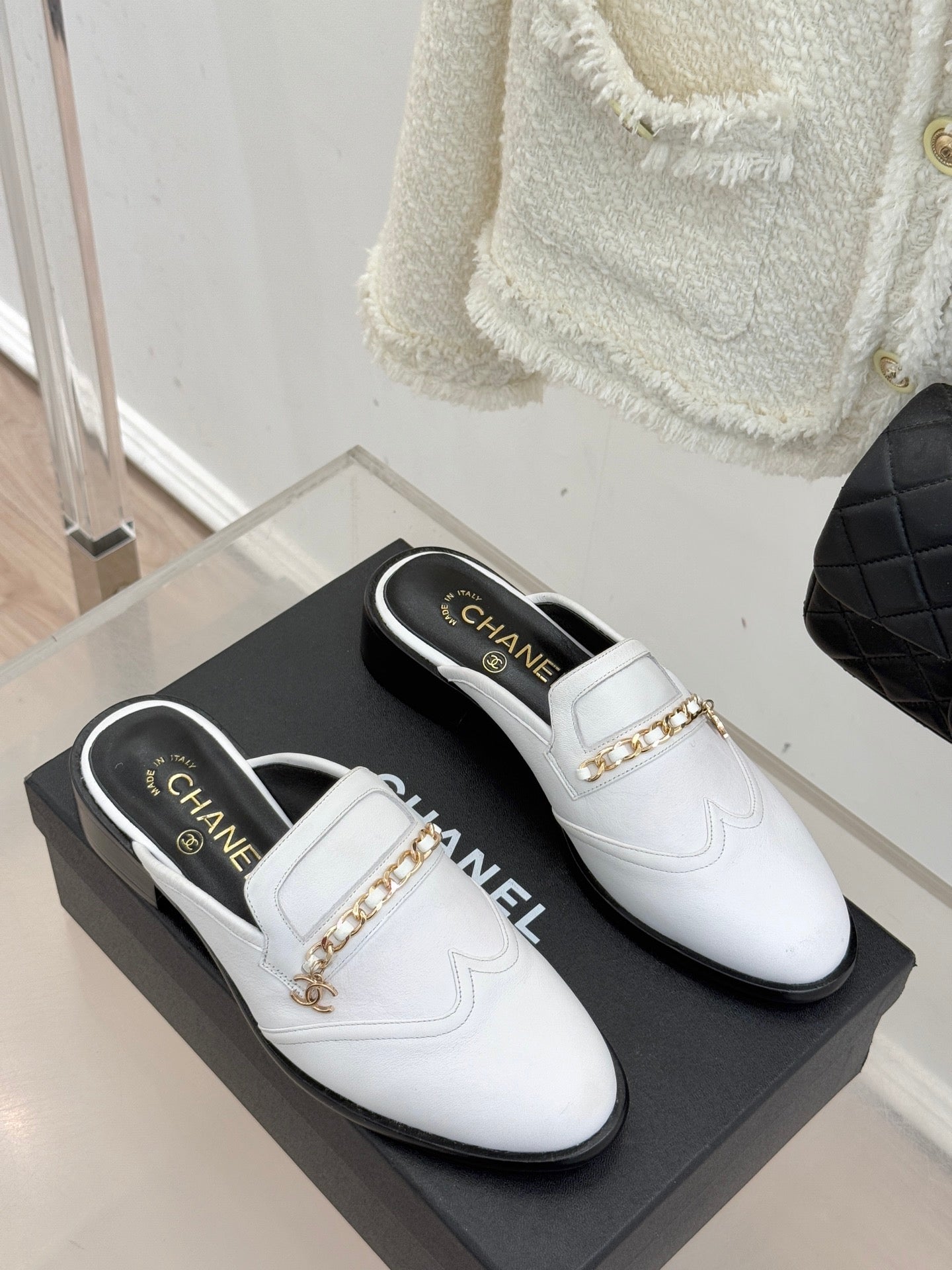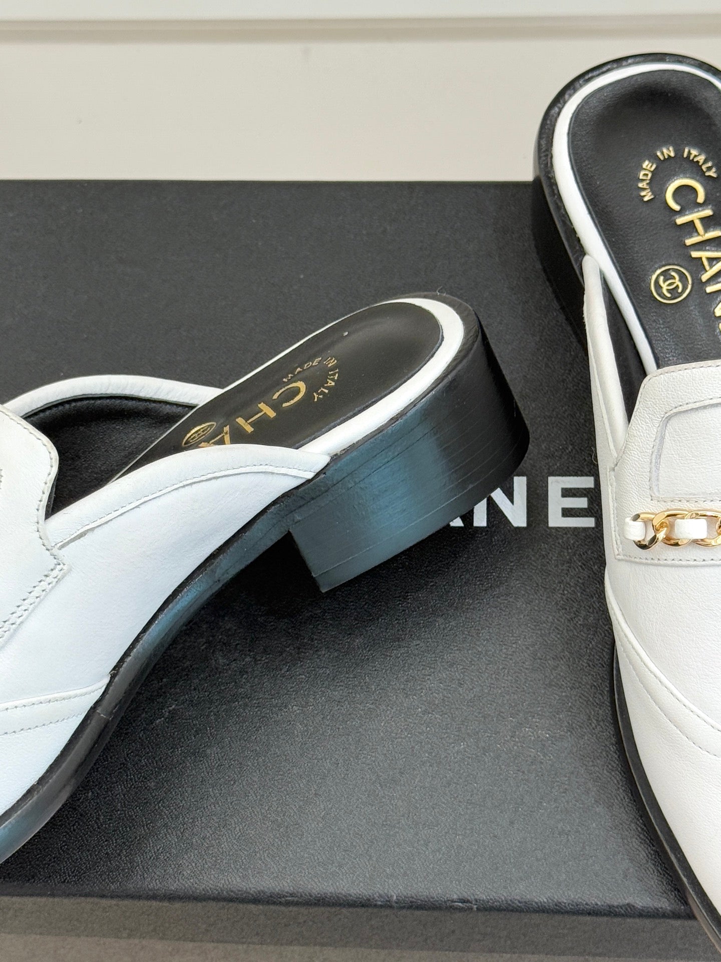 CC 25s Double C Buckle Half-Length Slippers White Calfskin 557700