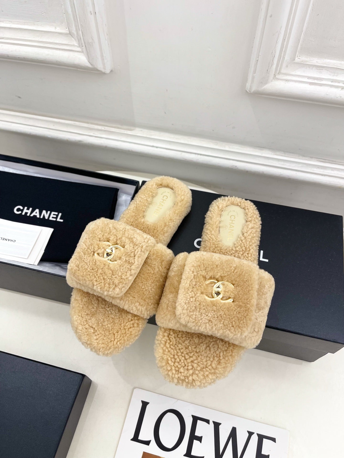 CC 25s Logo Slippers Beige Wool GHW 435268