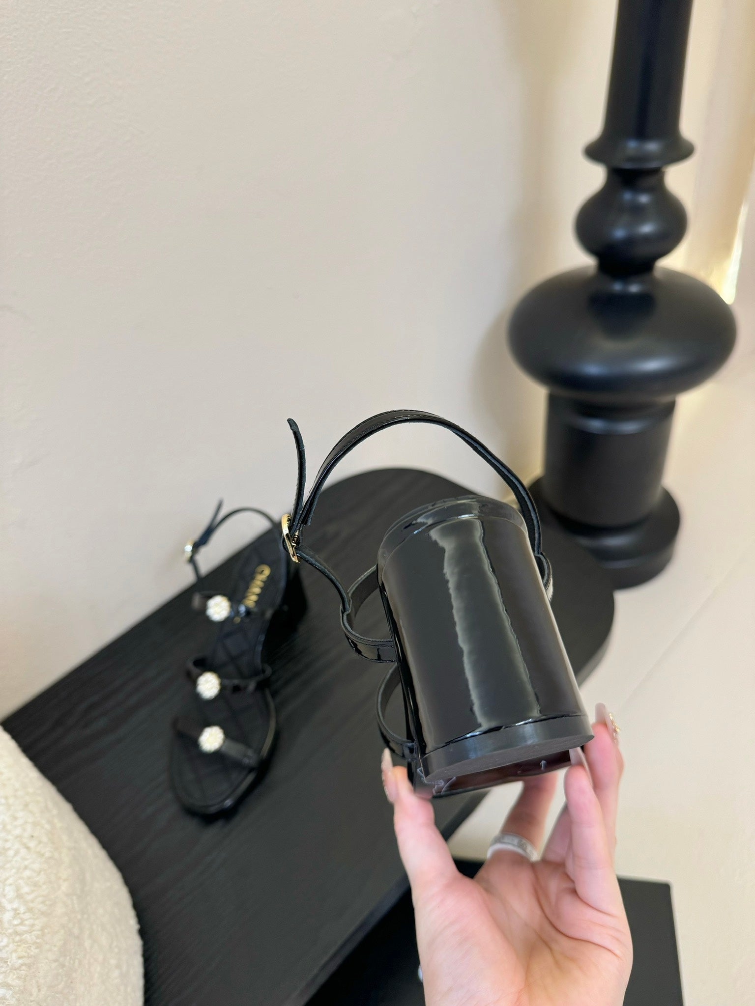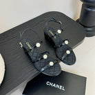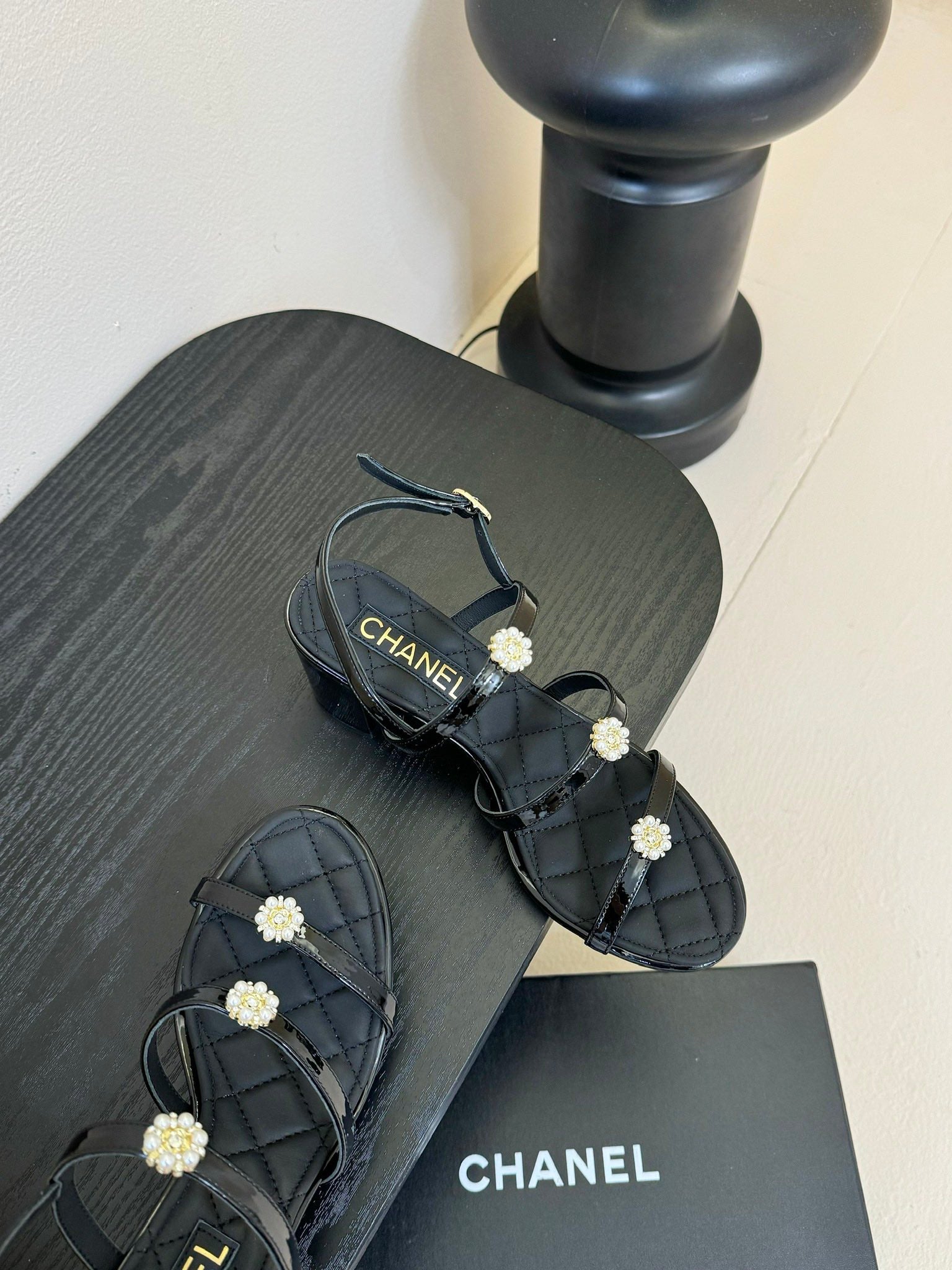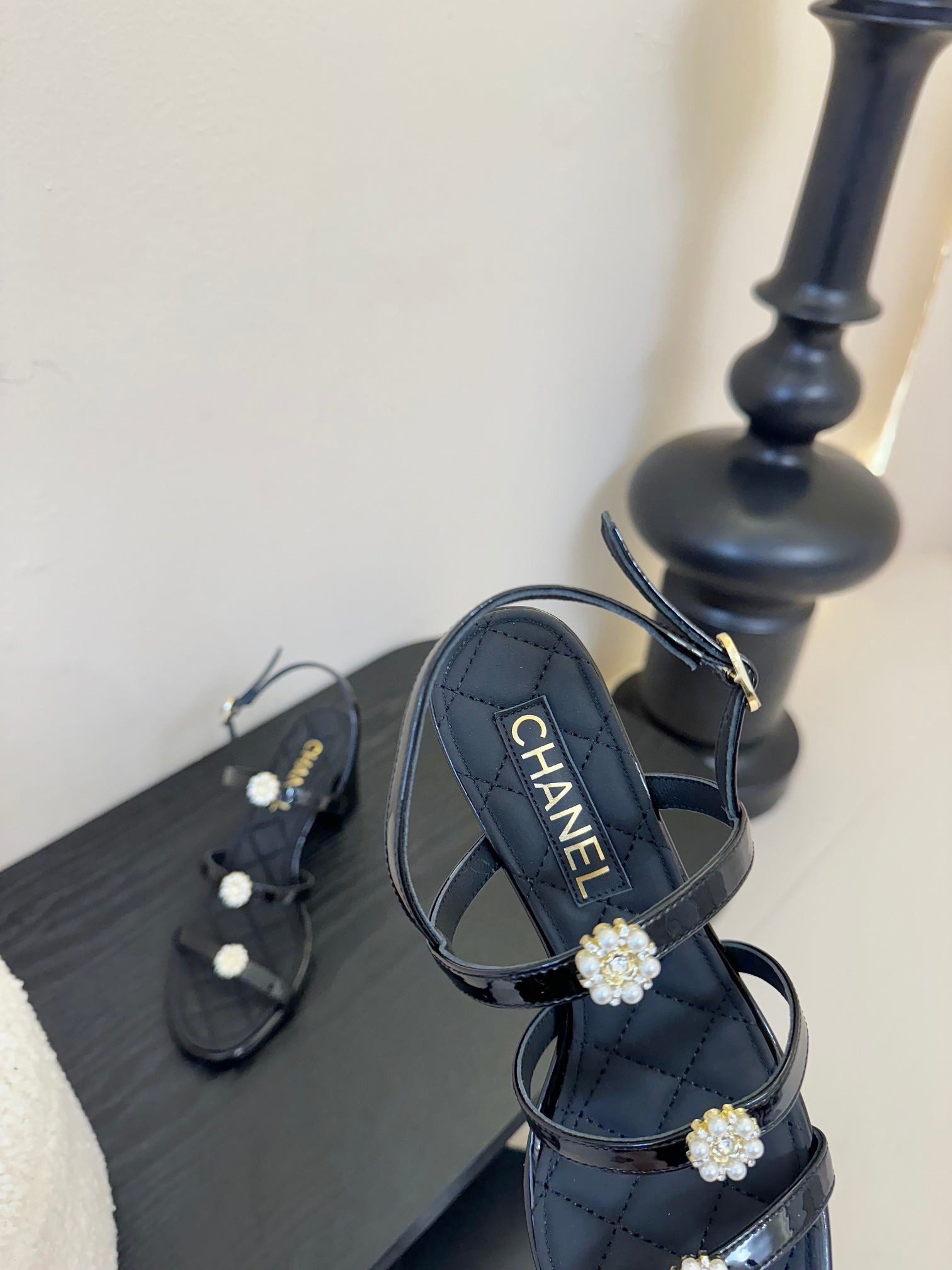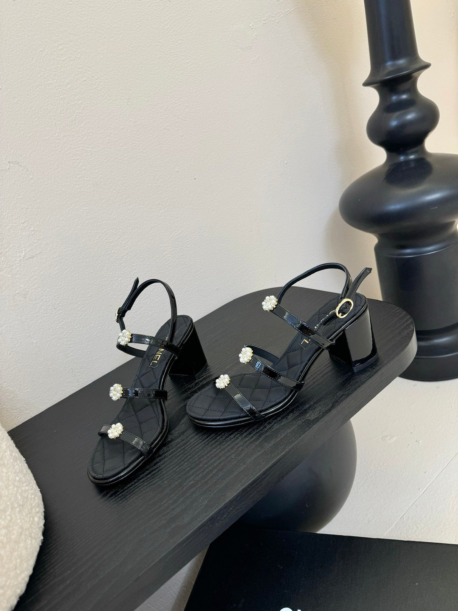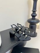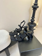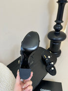 CC 25SS 3 Flowers Heel Sandals 60mm Black Sheepskin 351431