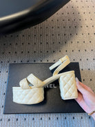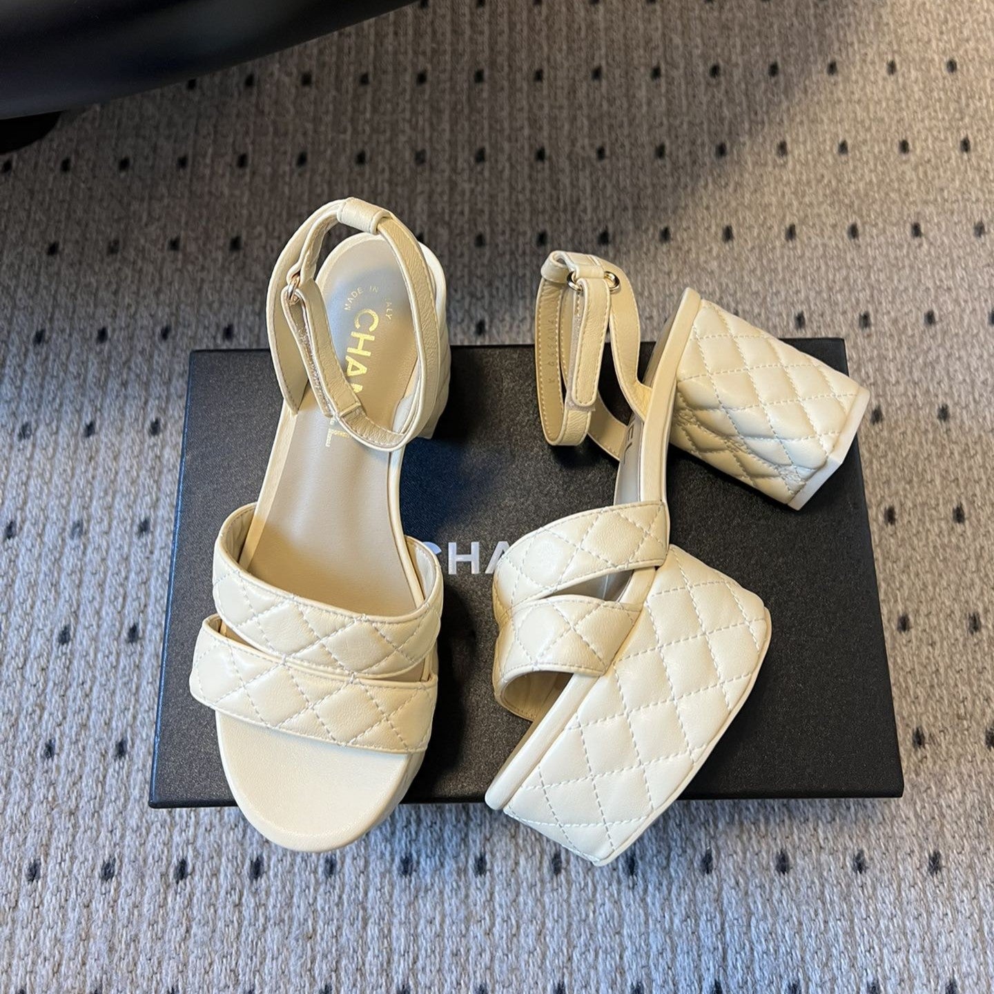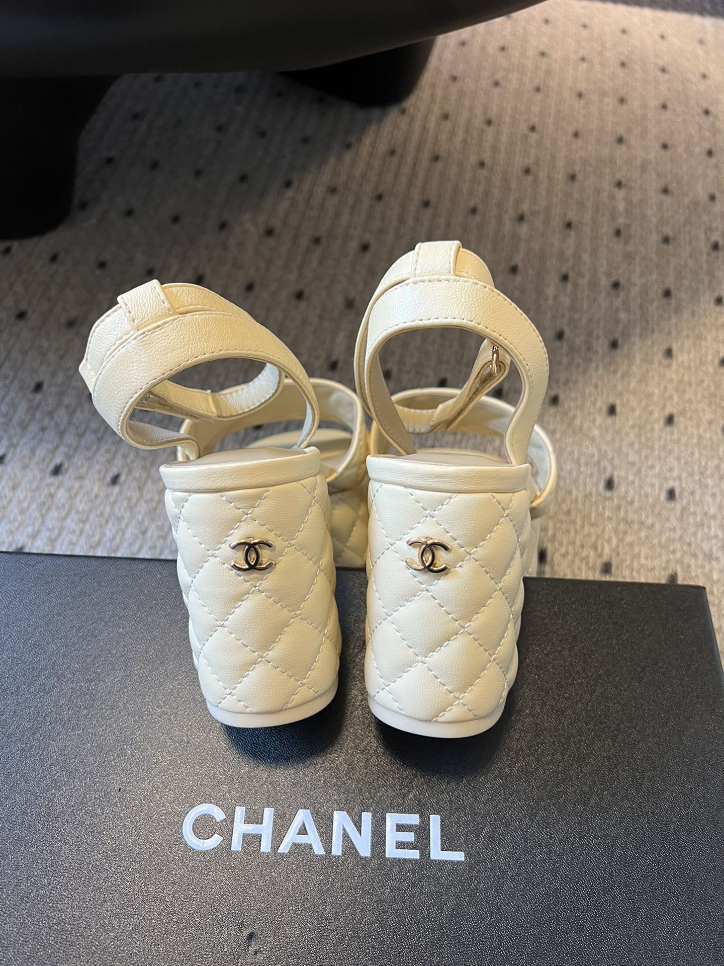CC 25SS Platform Sandals 8.5cm Beige Sheepskin 319627