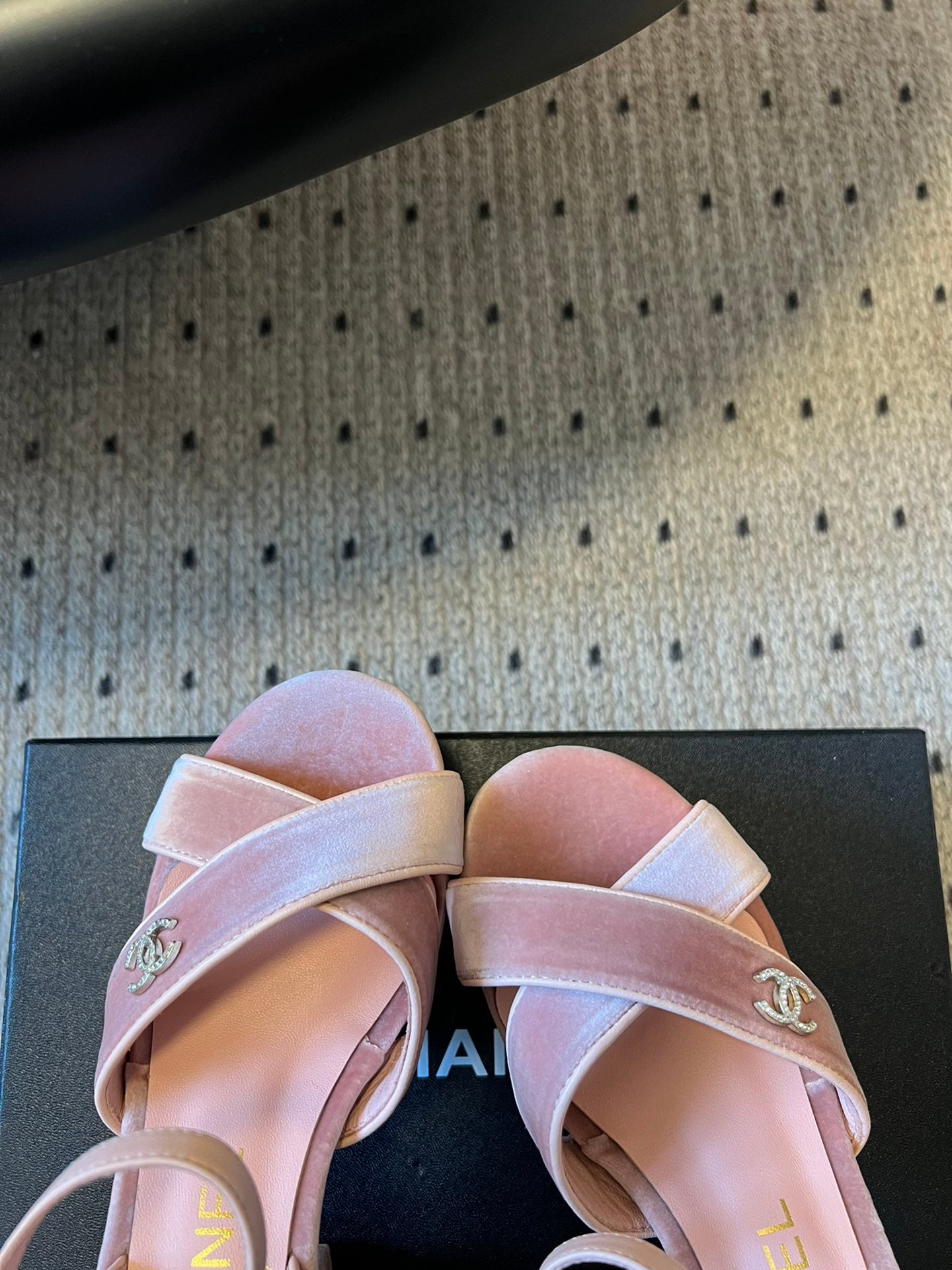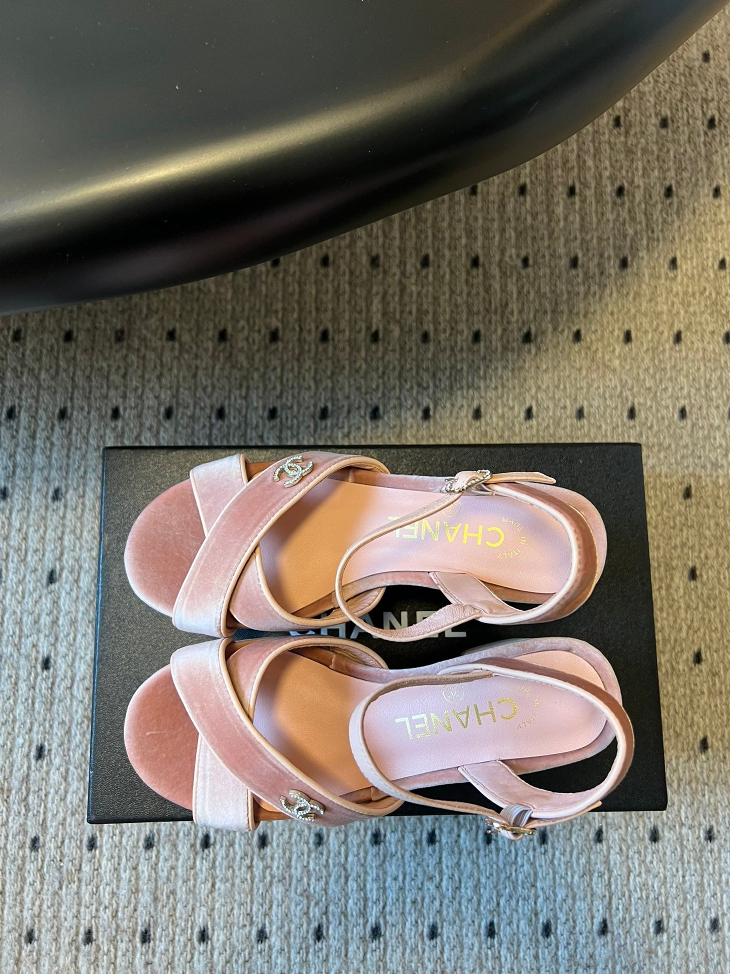 CC 25SS Platform Sandals 8.5cm Pink Lambskin And Velvet 319626