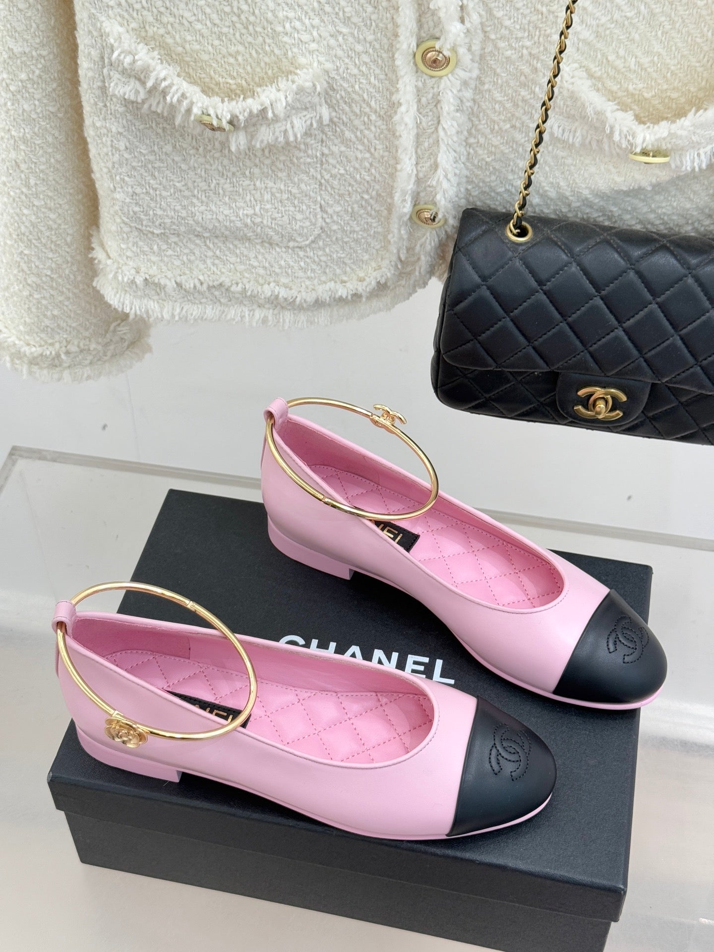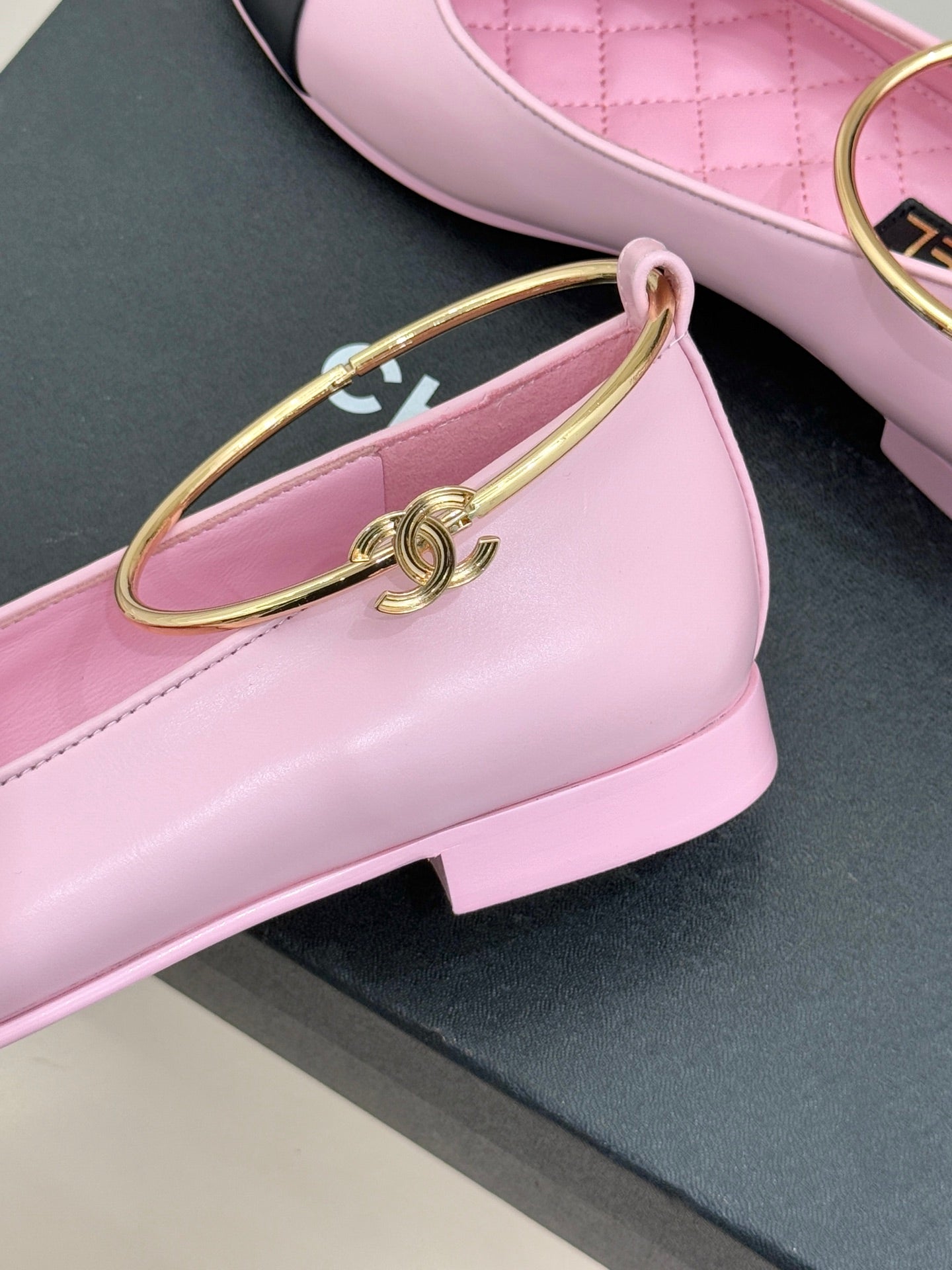CC 26C Ribbon Double C Camellia Mary Jane Pink Black Lambskin
