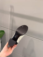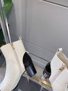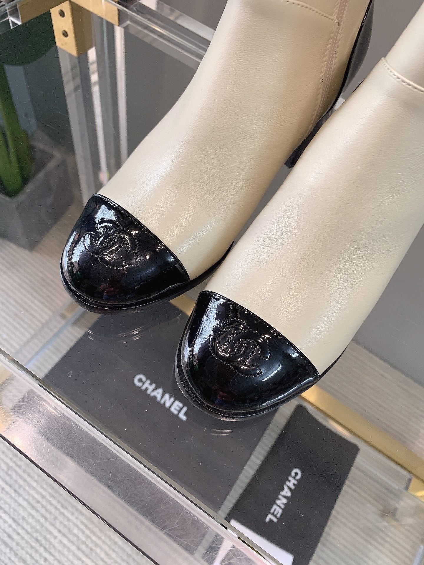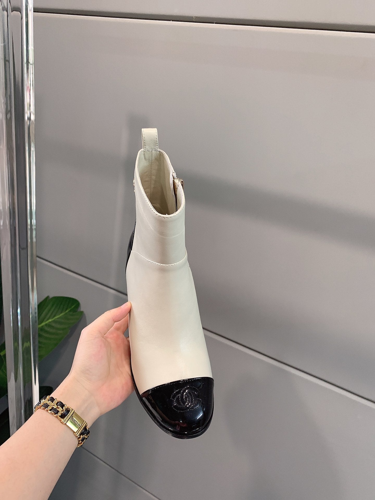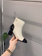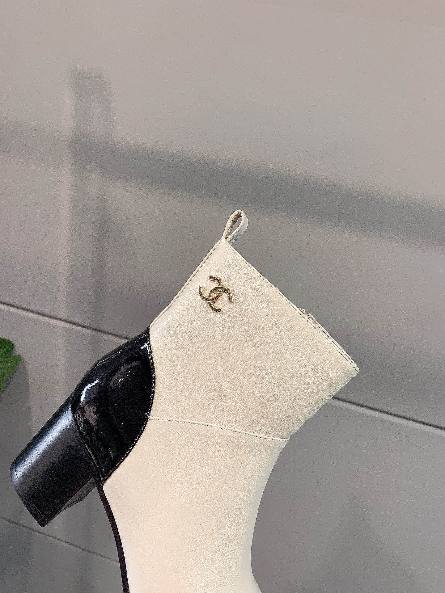 CC Block Heel Ankle Boots 60mm Black White Patent Leather Sheeepskin 464556