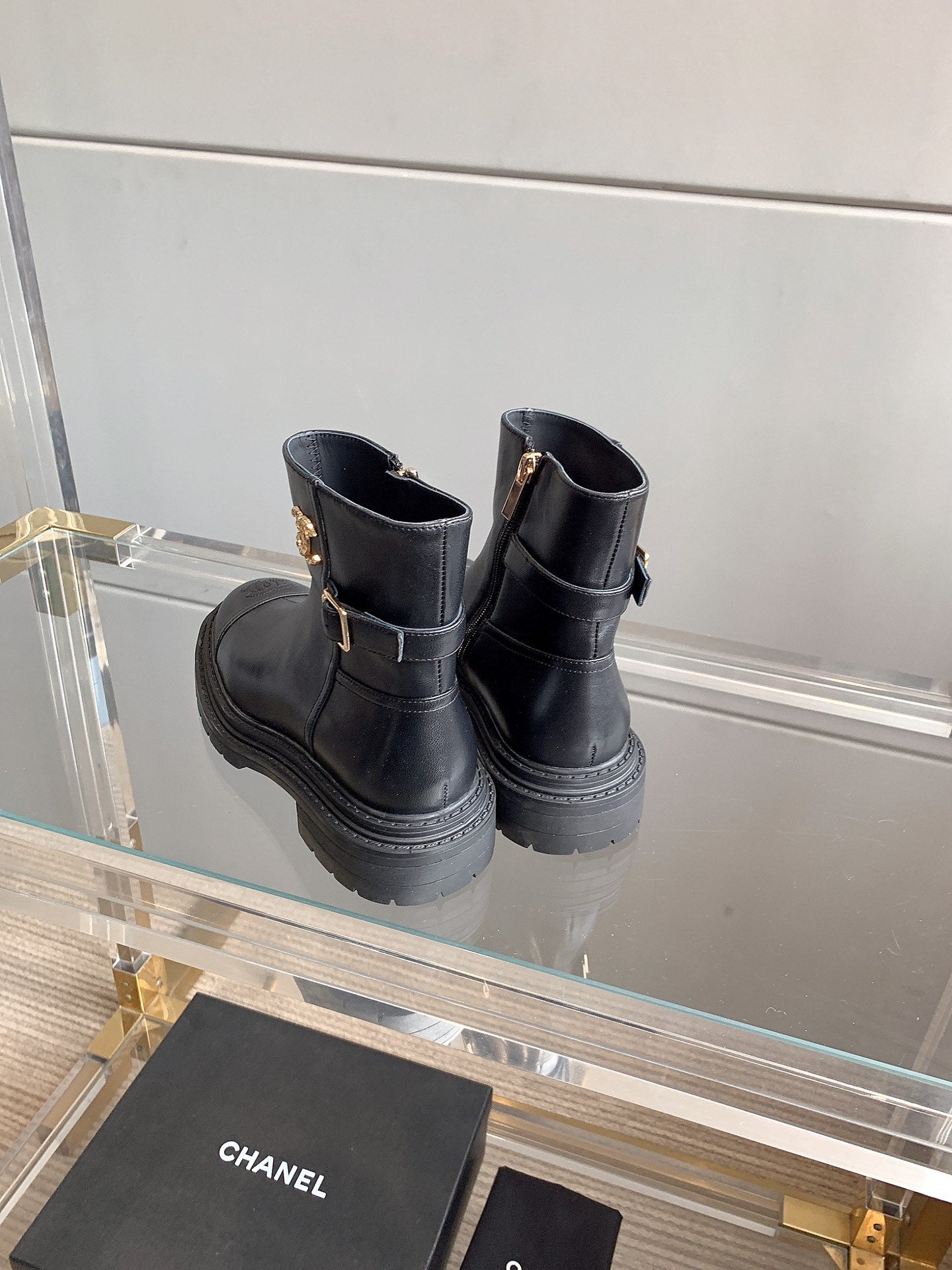 CC Cap Toe Ankle Boots Black Cowhide 464570