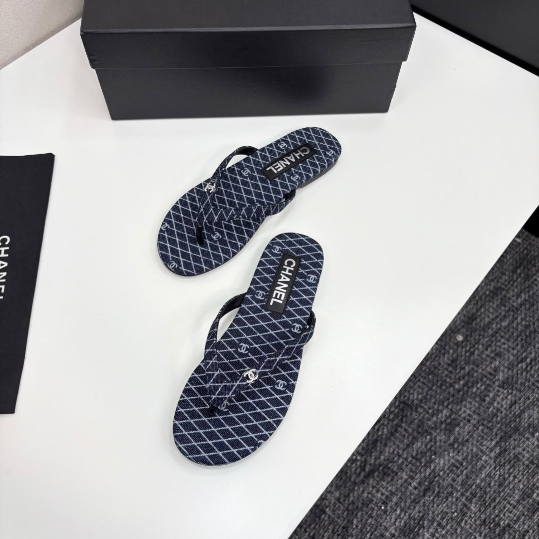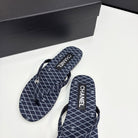 CC Crystal Logo Thong Sandal Navy Blue Fabric And Sheepskin 352483