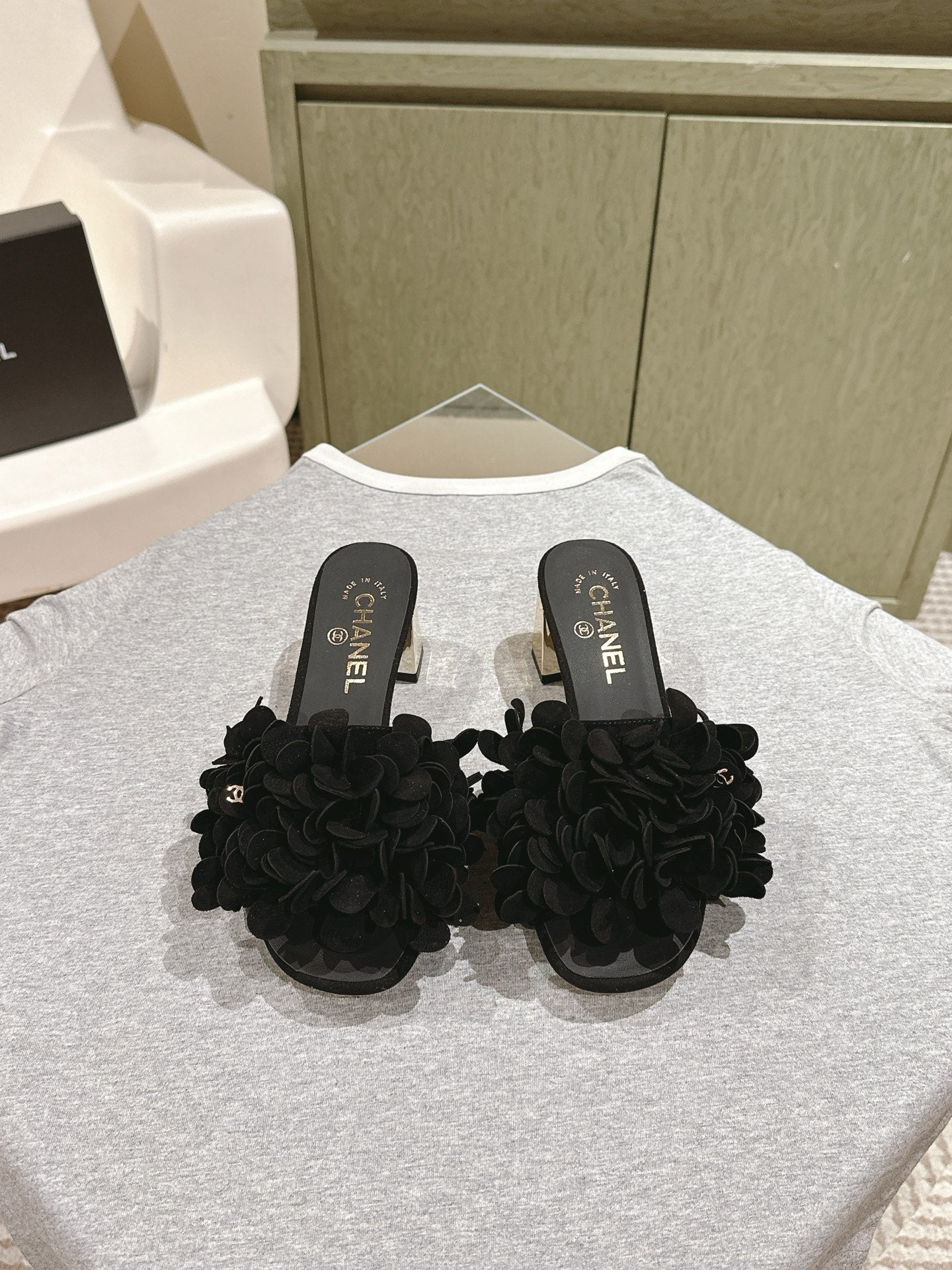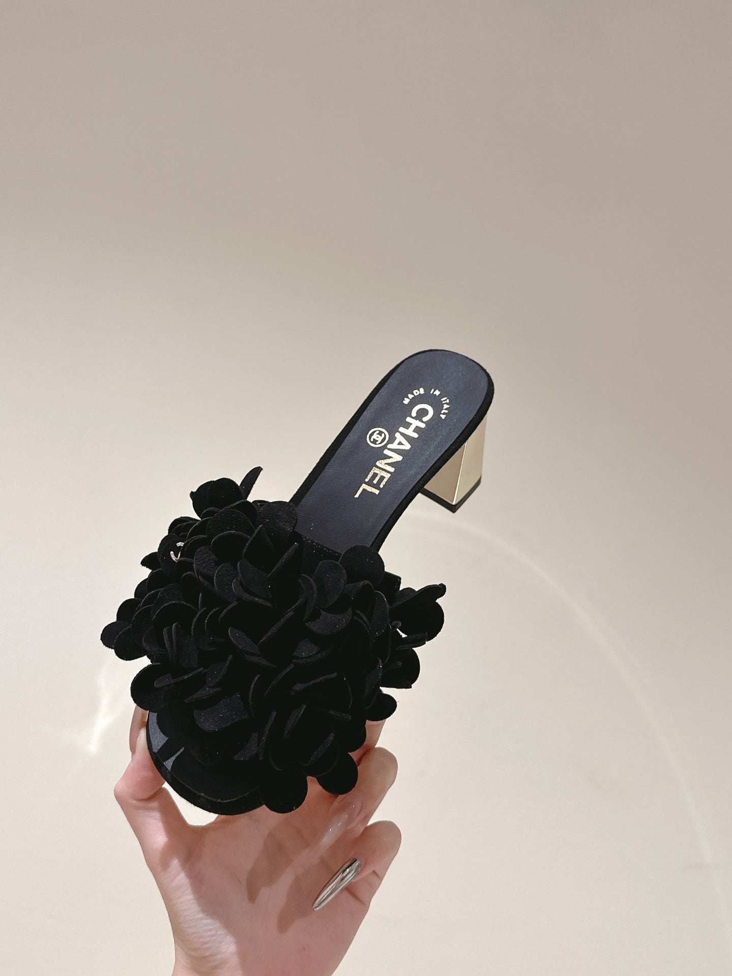CC Floral Slide Sandals 55mm Black Suede Cowhide 454284
