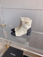 CC Low-Cut Logo Ankle Boots 50mm Black White Sheepskin Frabic 464559