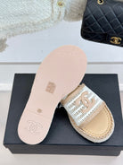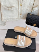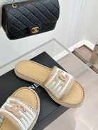 CC Mesh Hollow Chain Double C Thick-Soled Slippers 20mm Beige White 265644