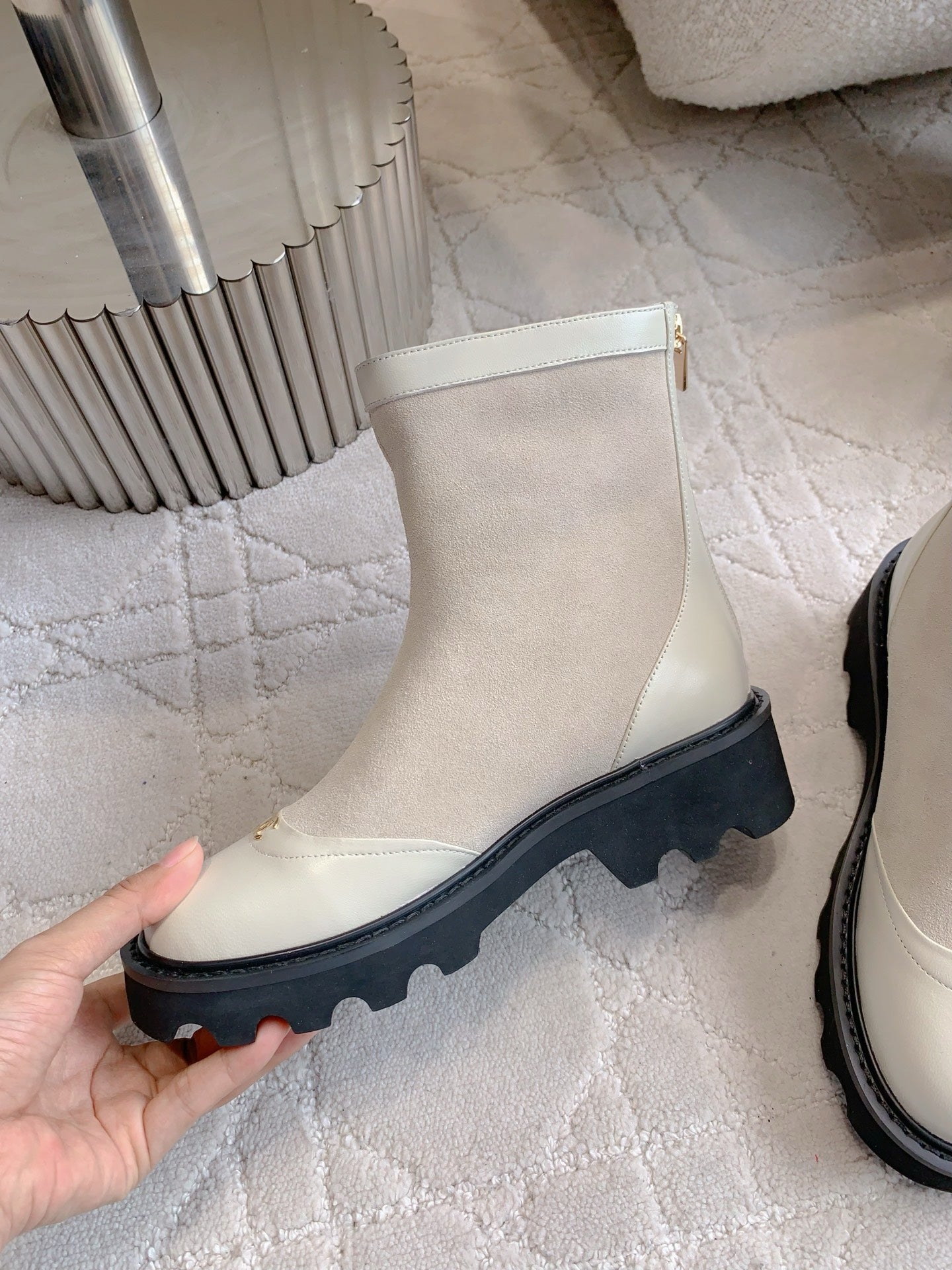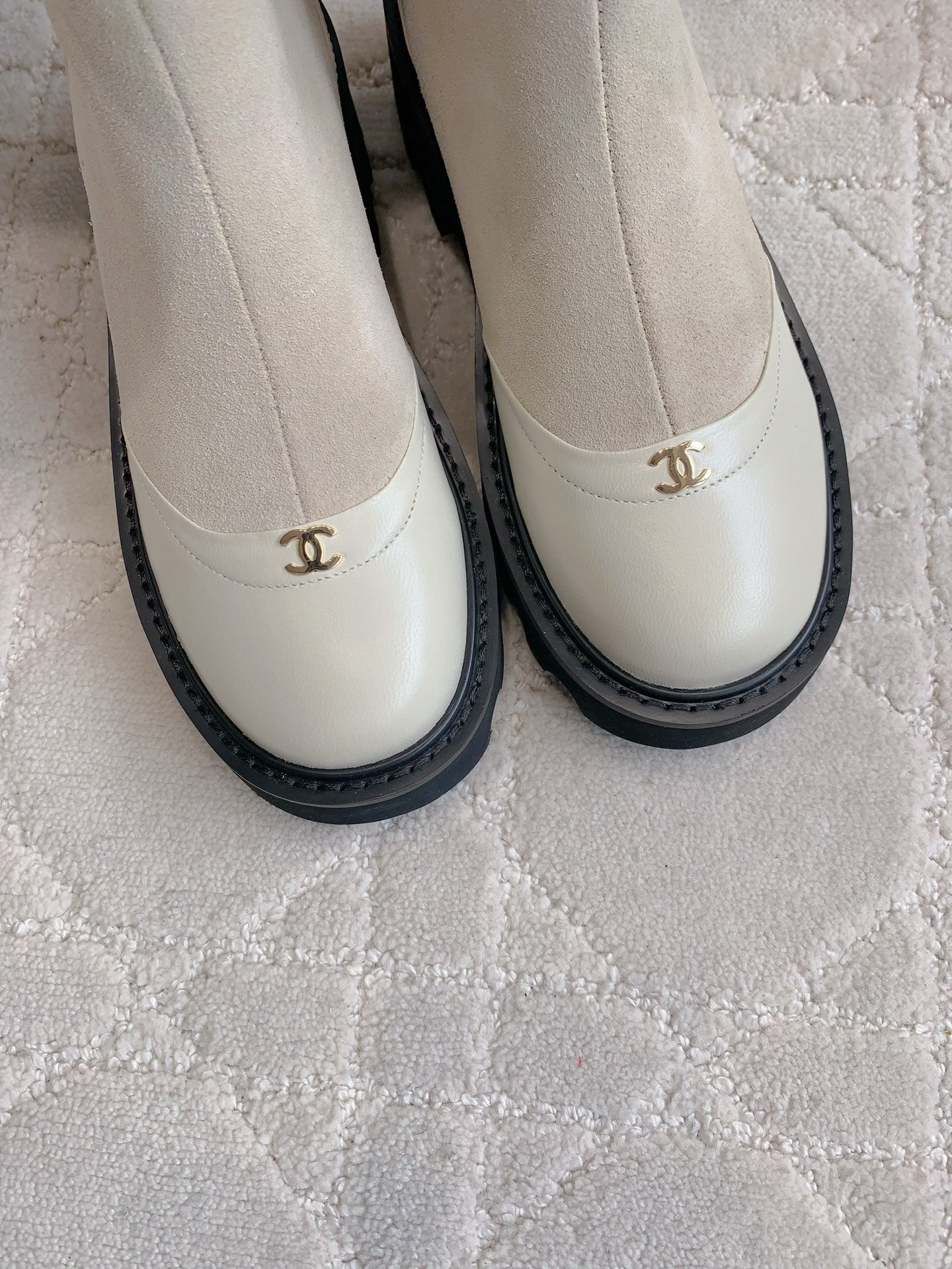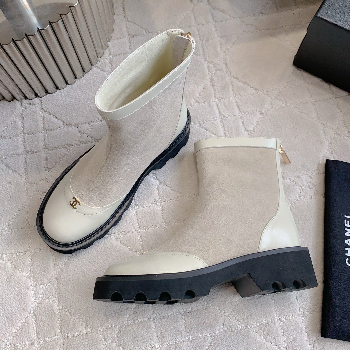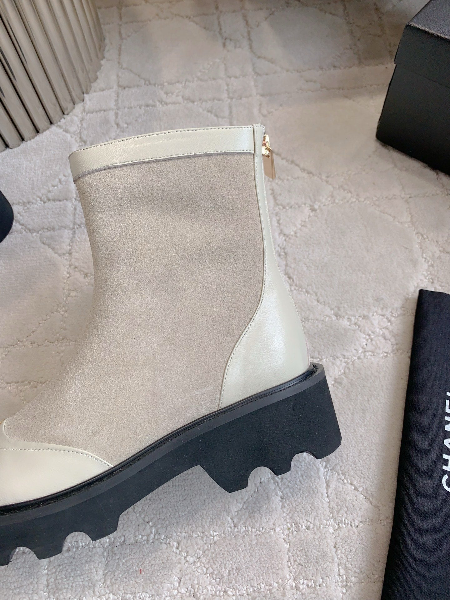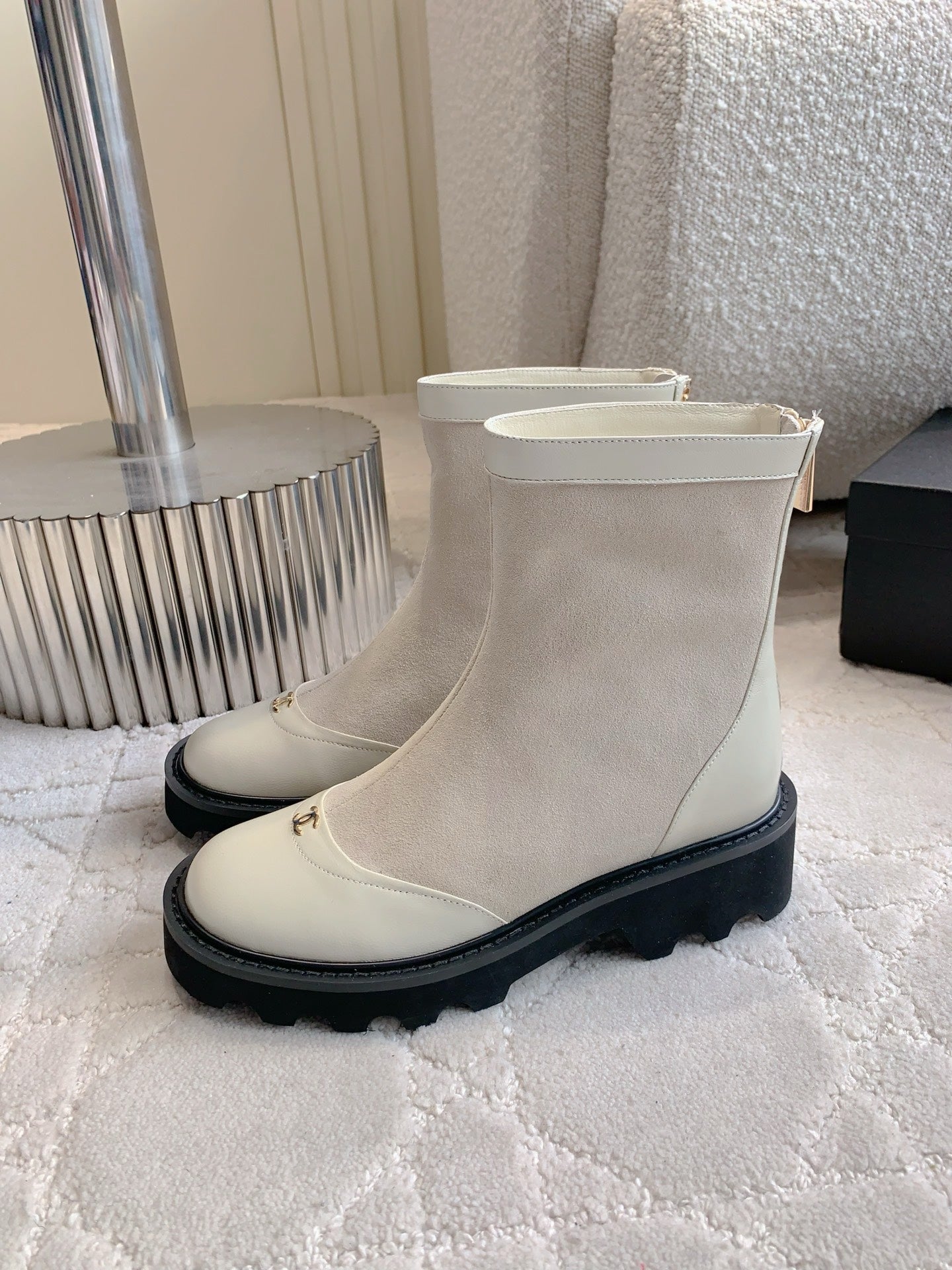 CC New Platform Ankle Boots Light Taupe Suede Sheepskin