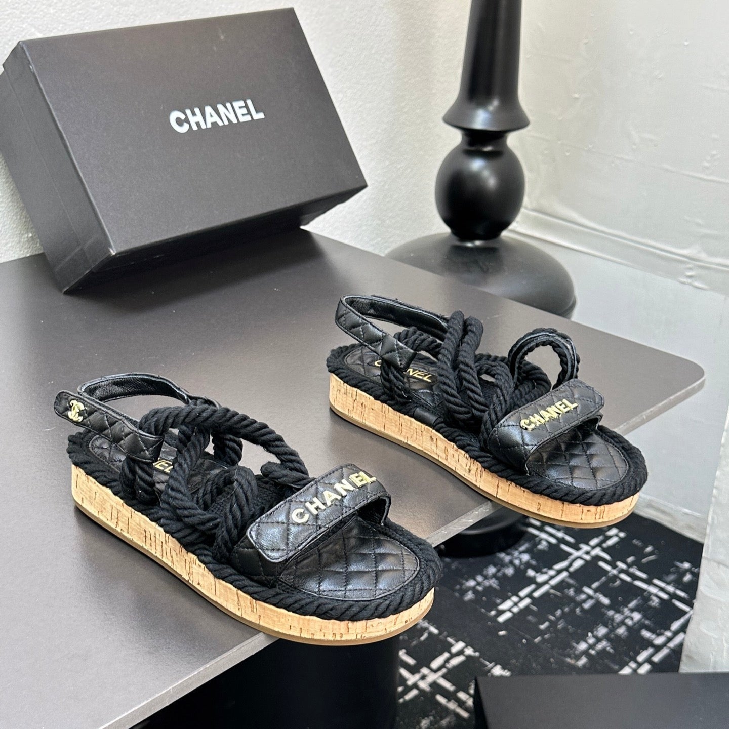 CC Sandals Black Rope Lambskin 331281