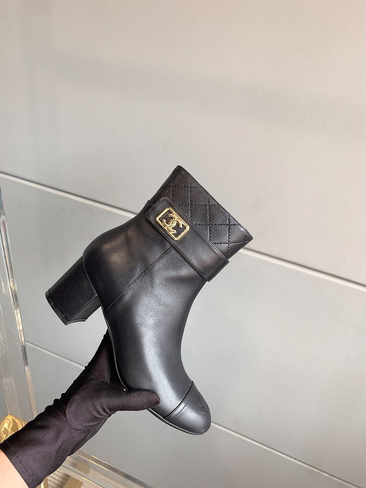CC Square Toe Ankle Boots 70mm Black Cowhide 464564