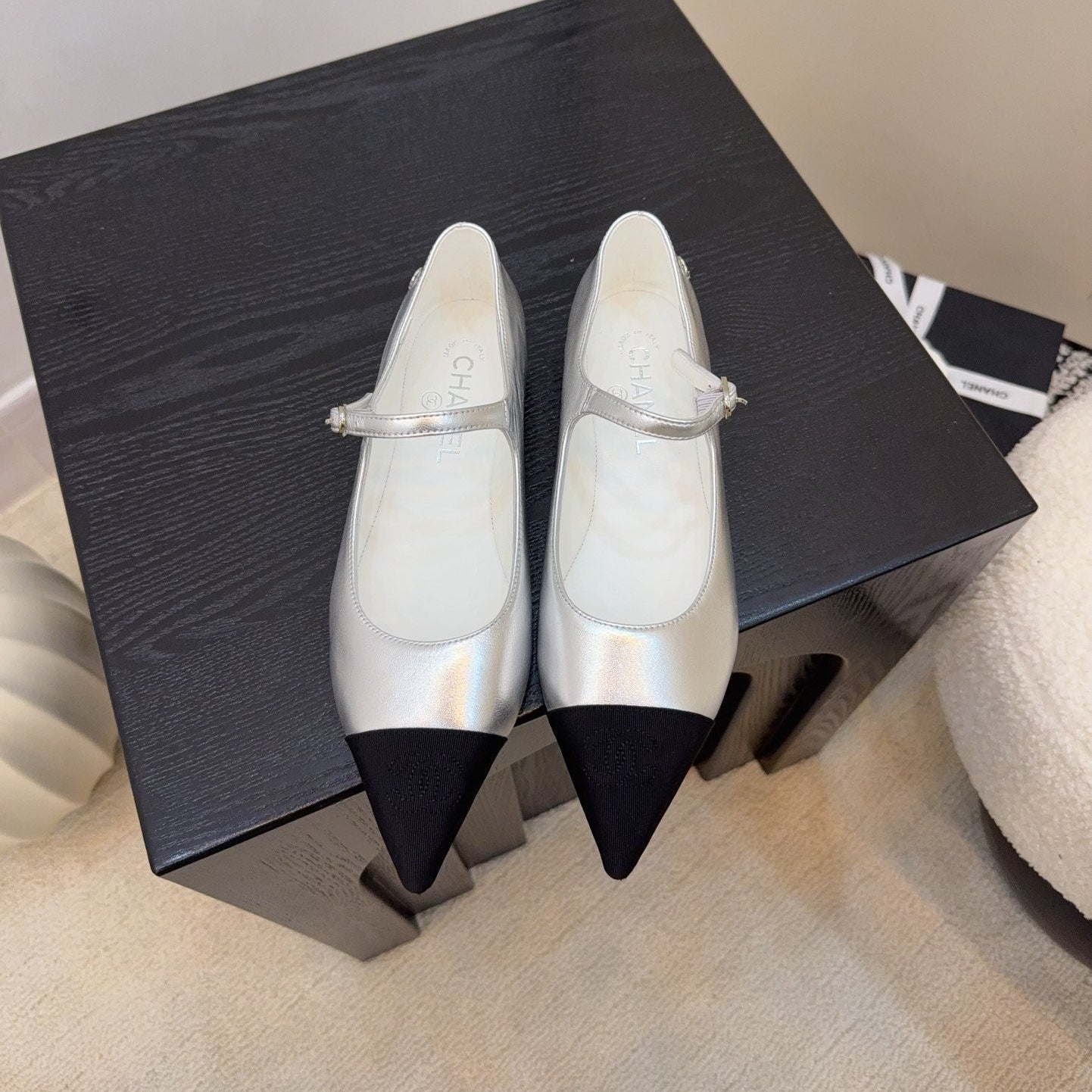 CD FW Mary Janes Sliver Metalic Lambskin & Grosgrain 505039