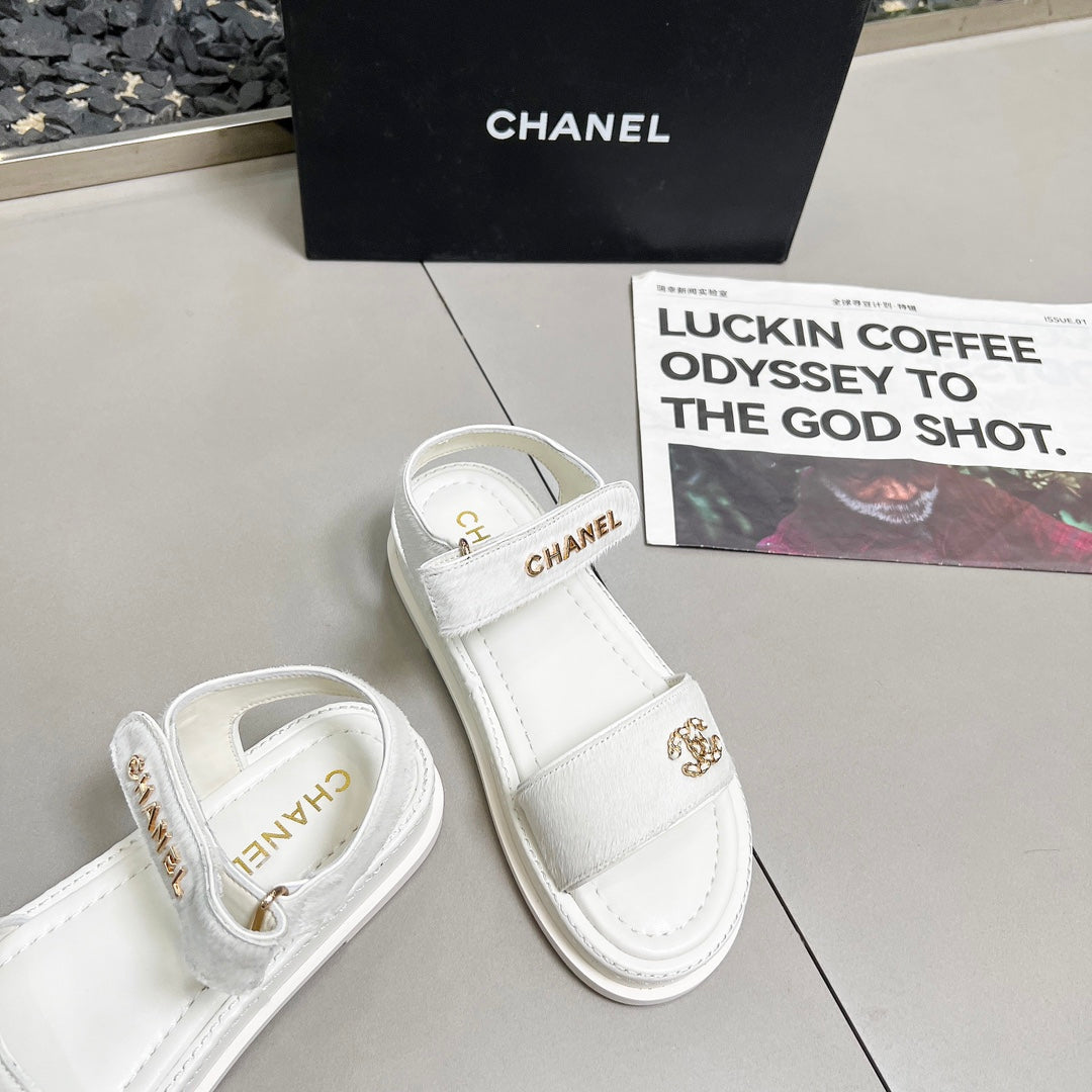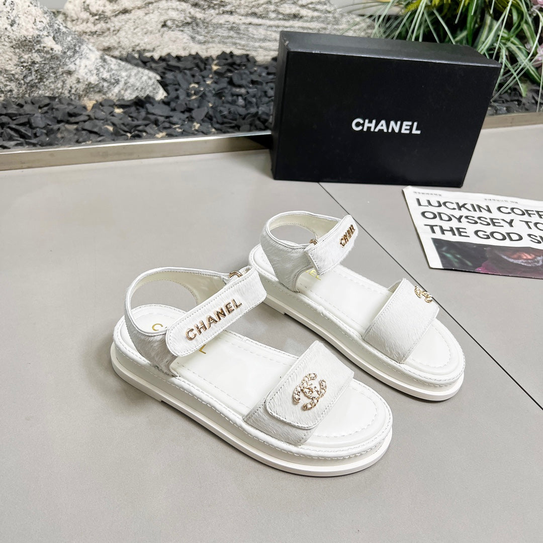 CC 25A Sandals Beige Horse Fur Leather 338605