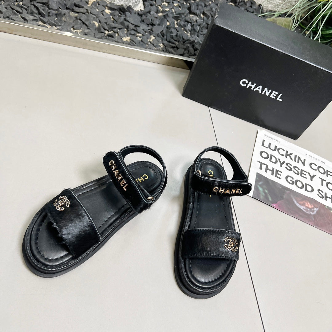 CC 25A Sandals Black Horse Fur Leather 338606