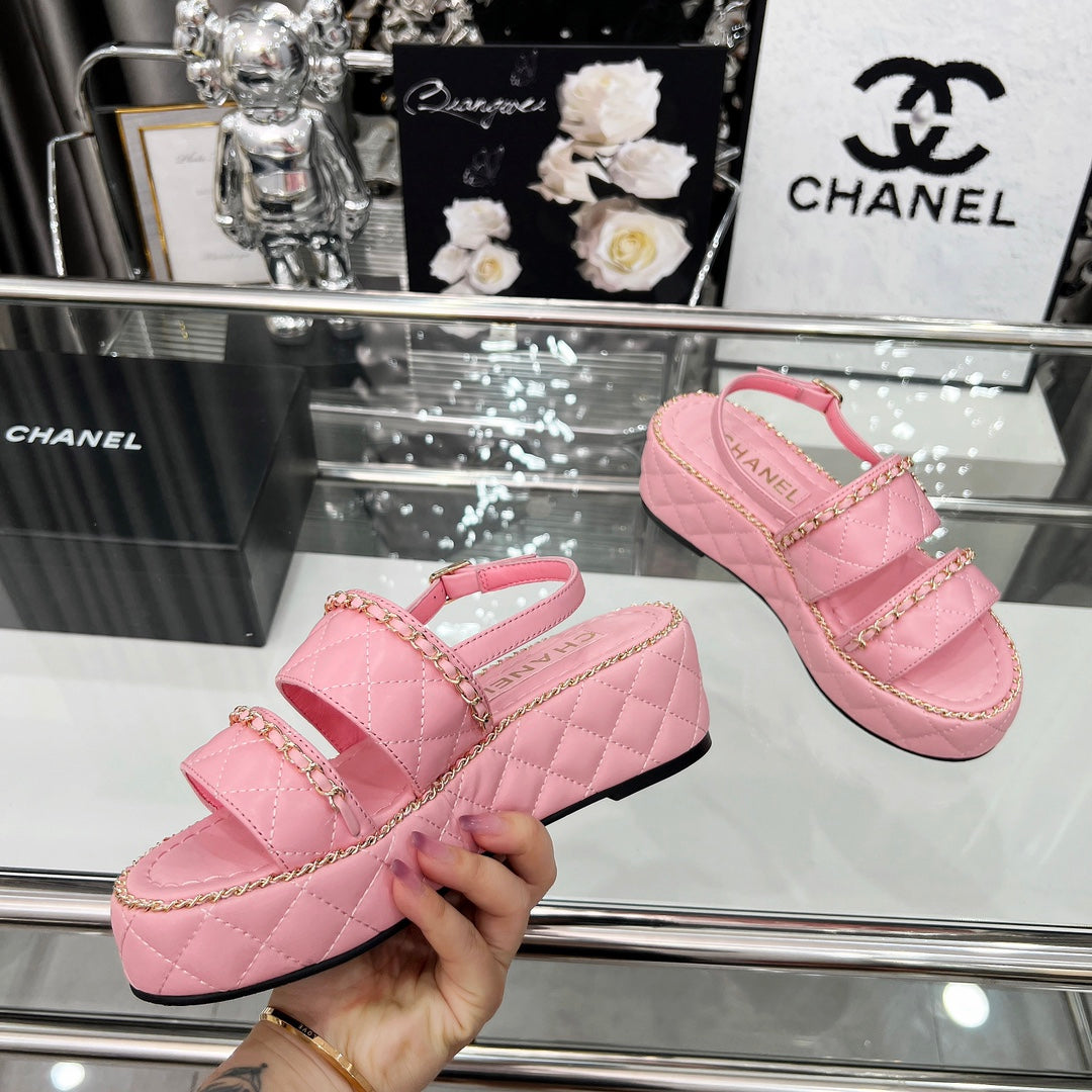CC 25 Sandals Leather Chain 6cm Pink Lambskin 338653