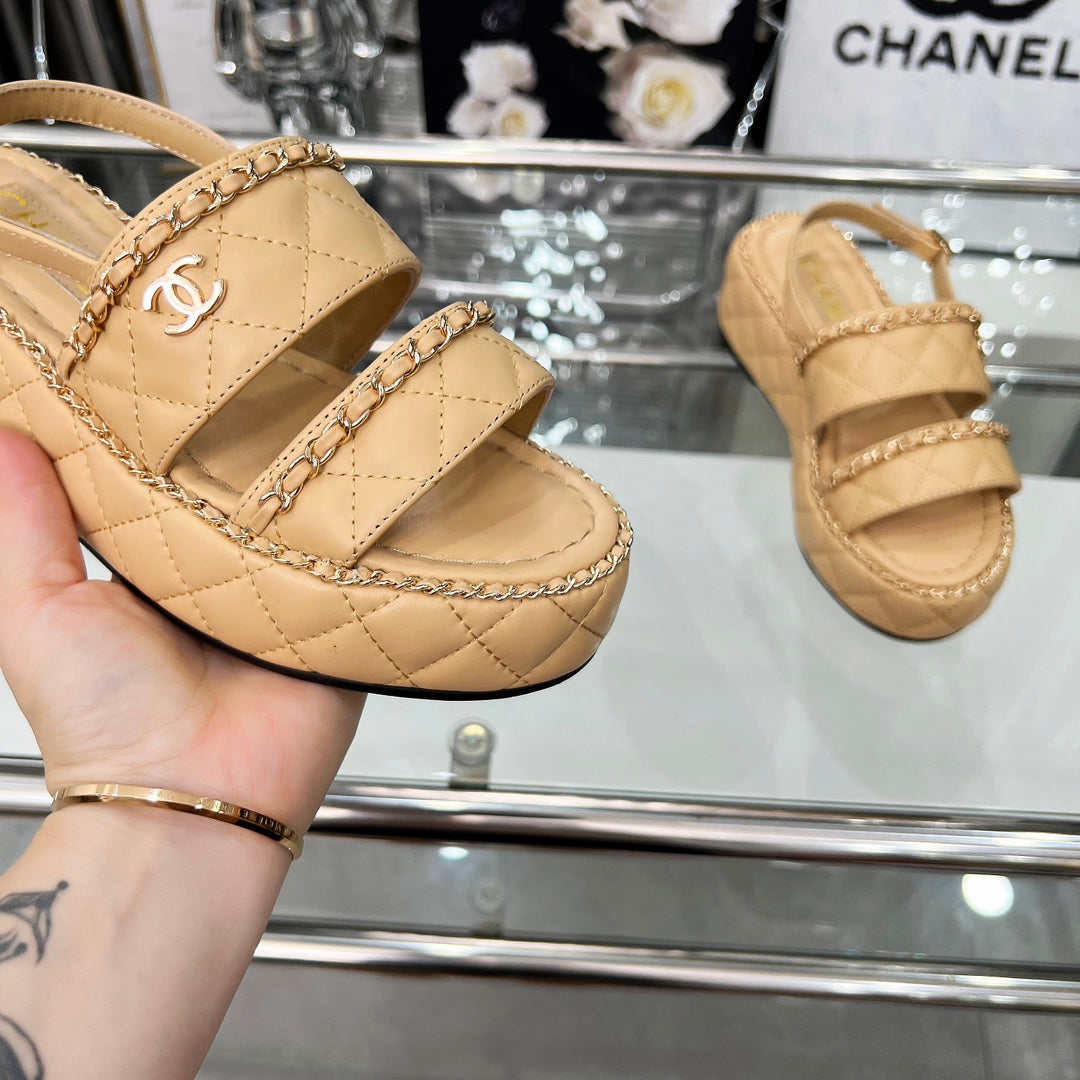 Chanel Chanel Wedge Sandals Beige Lambskin