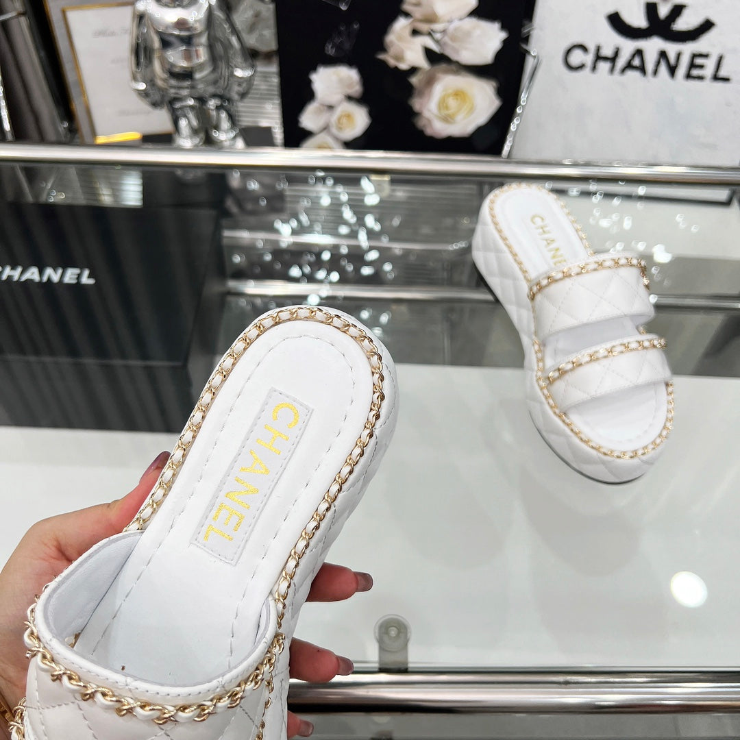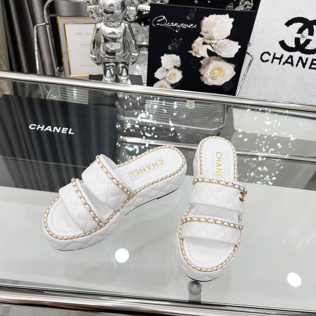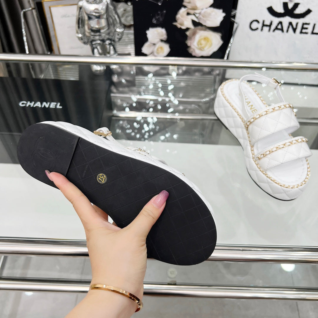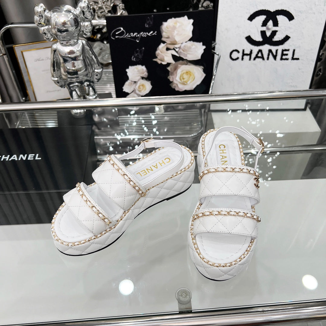 CC 25 Sandals Leather Chain 6cm White Lambskin 338655