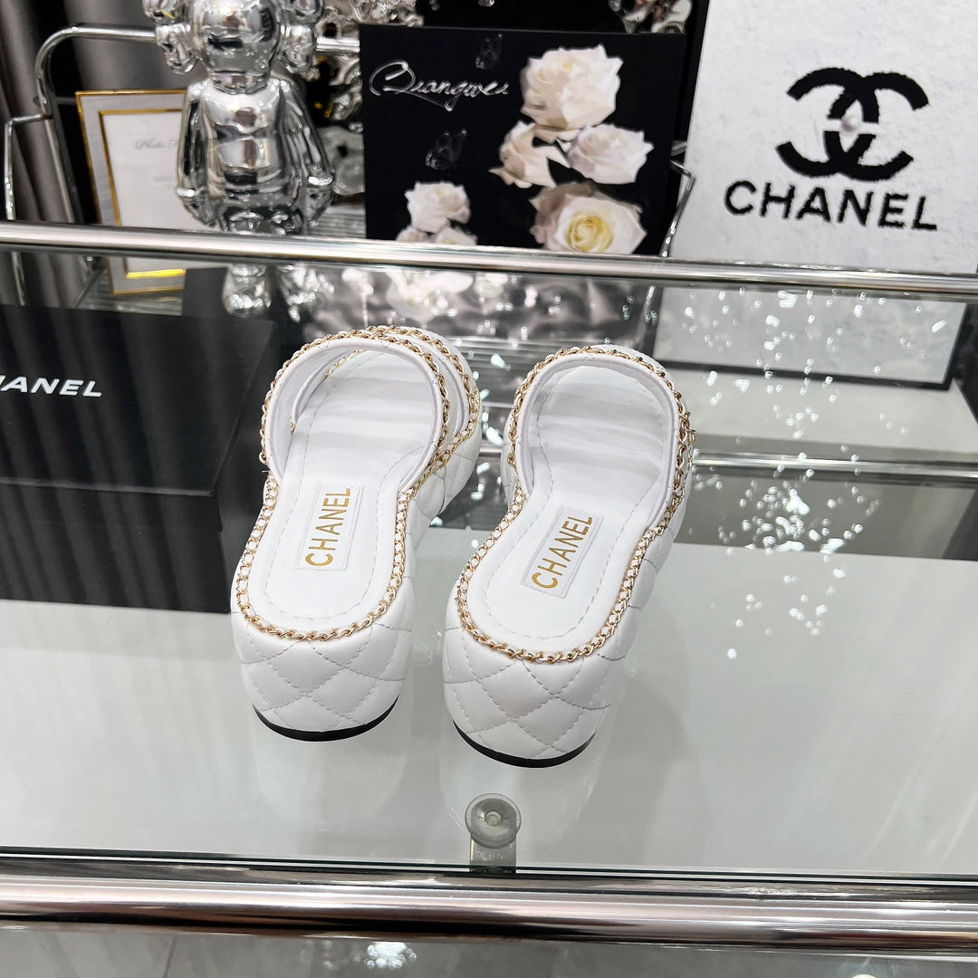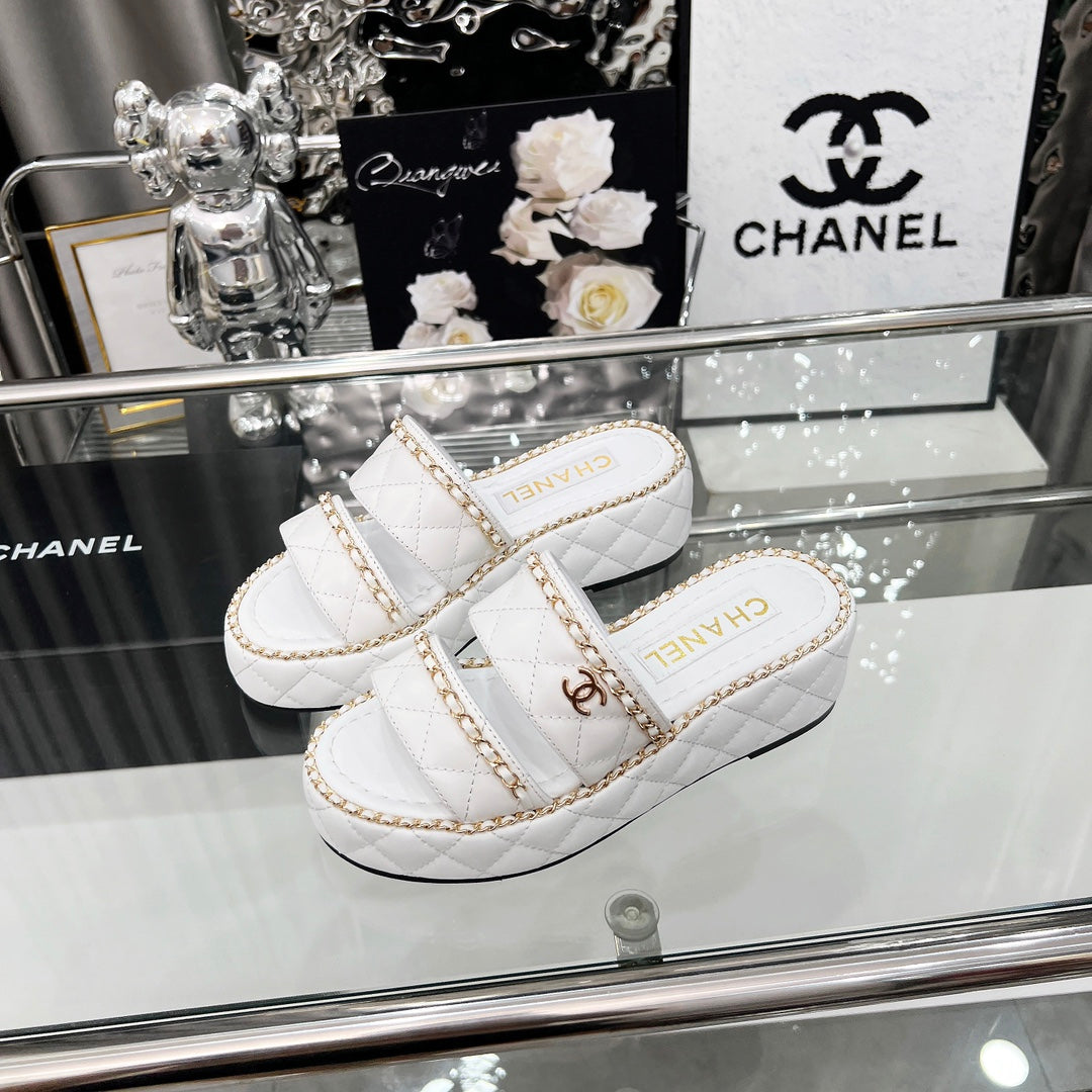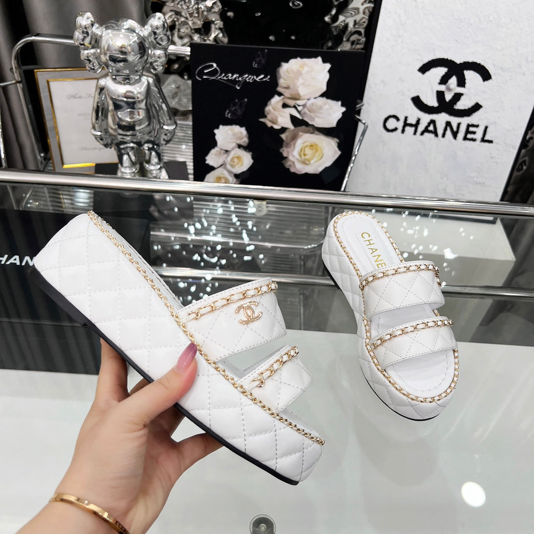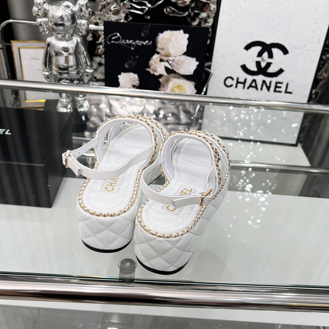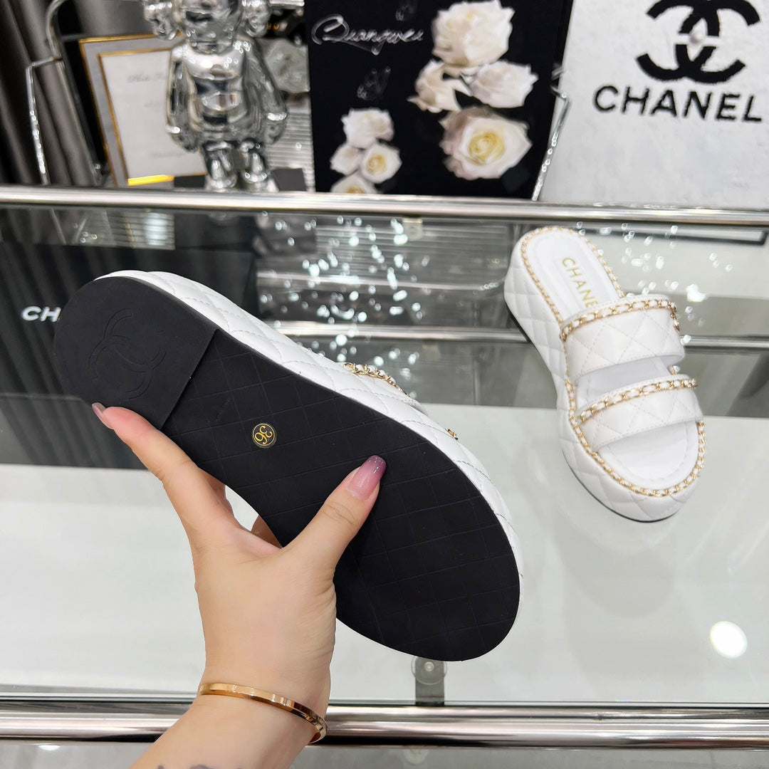 CC 25 Sandals Leather Chain 6cm White Lambskin 338655
