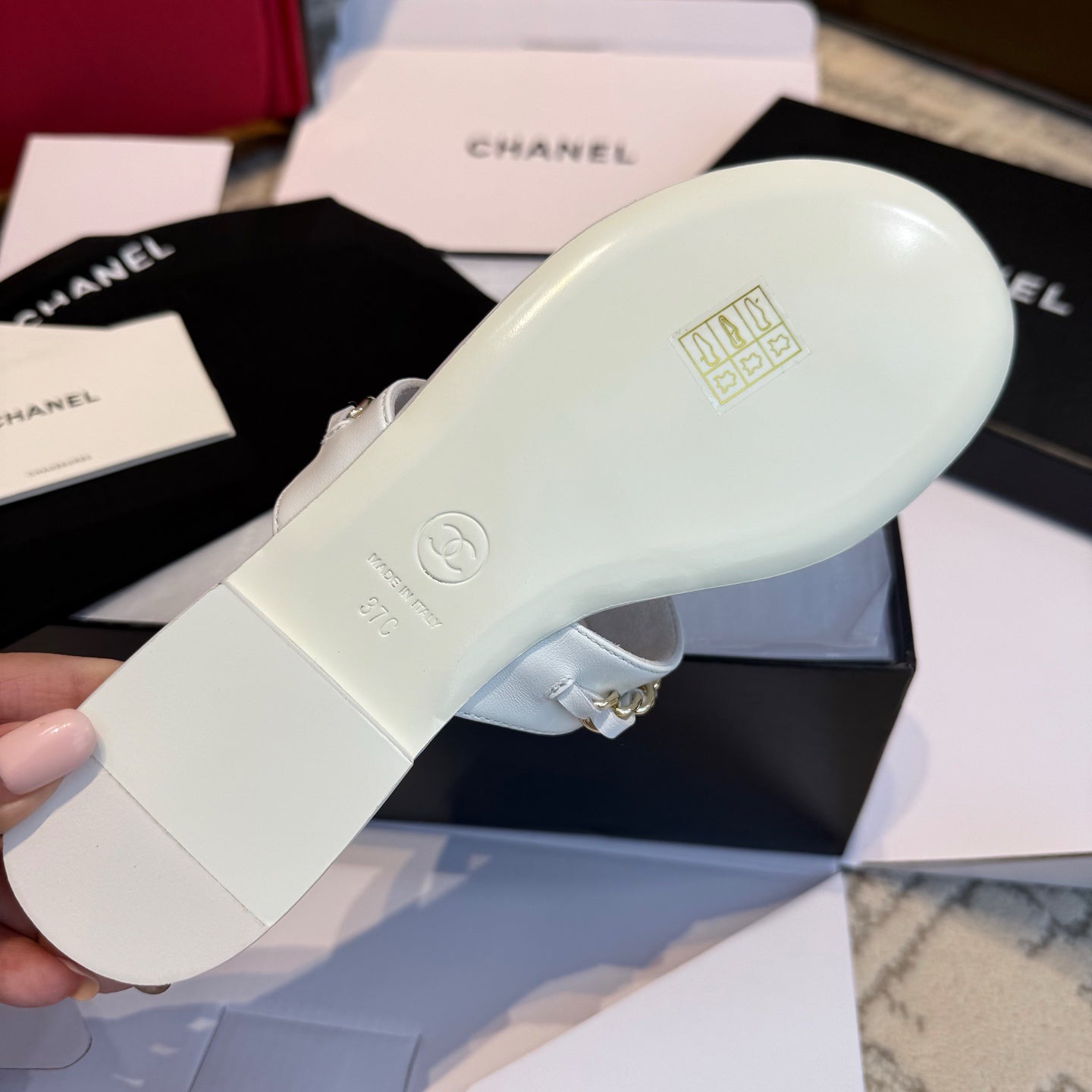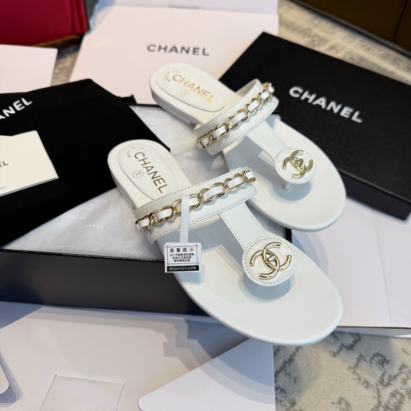 CC 25SS Thong Sandal 2cm Leather Chain White Lambskin 319699