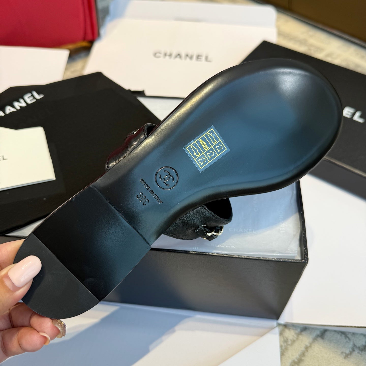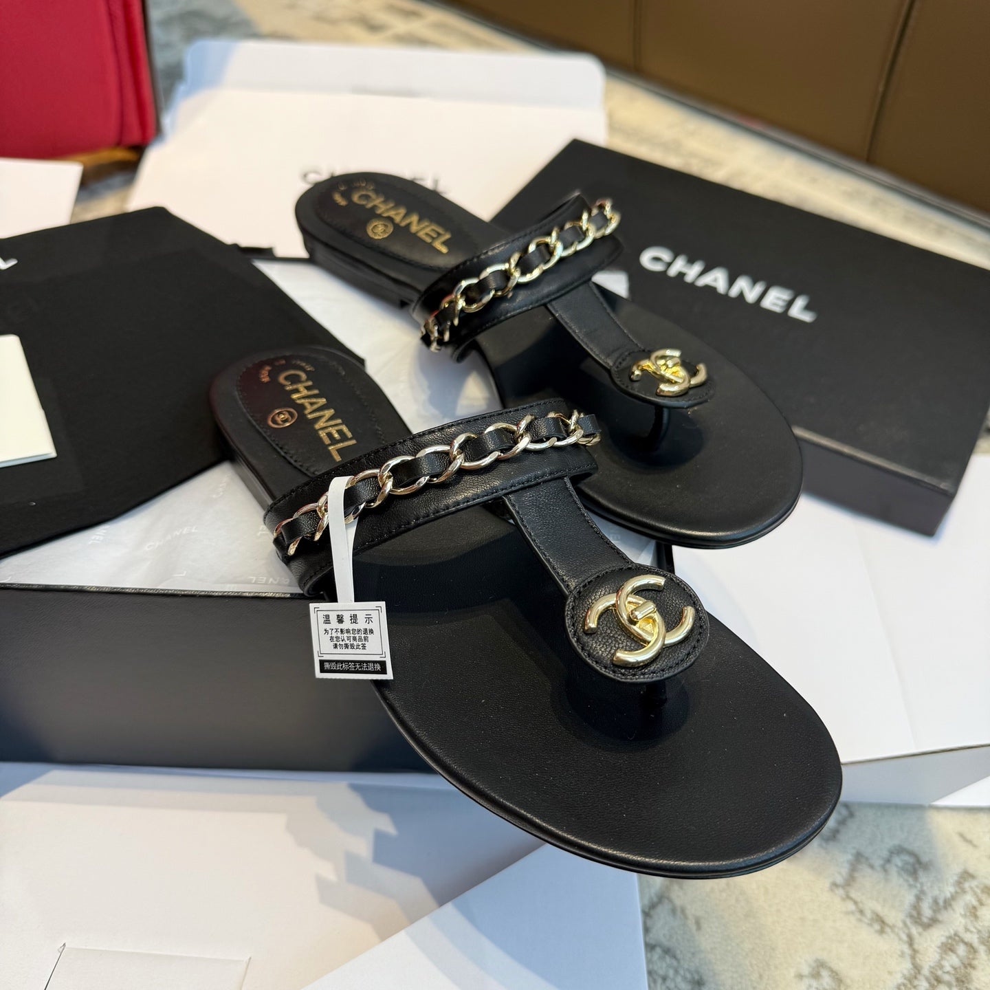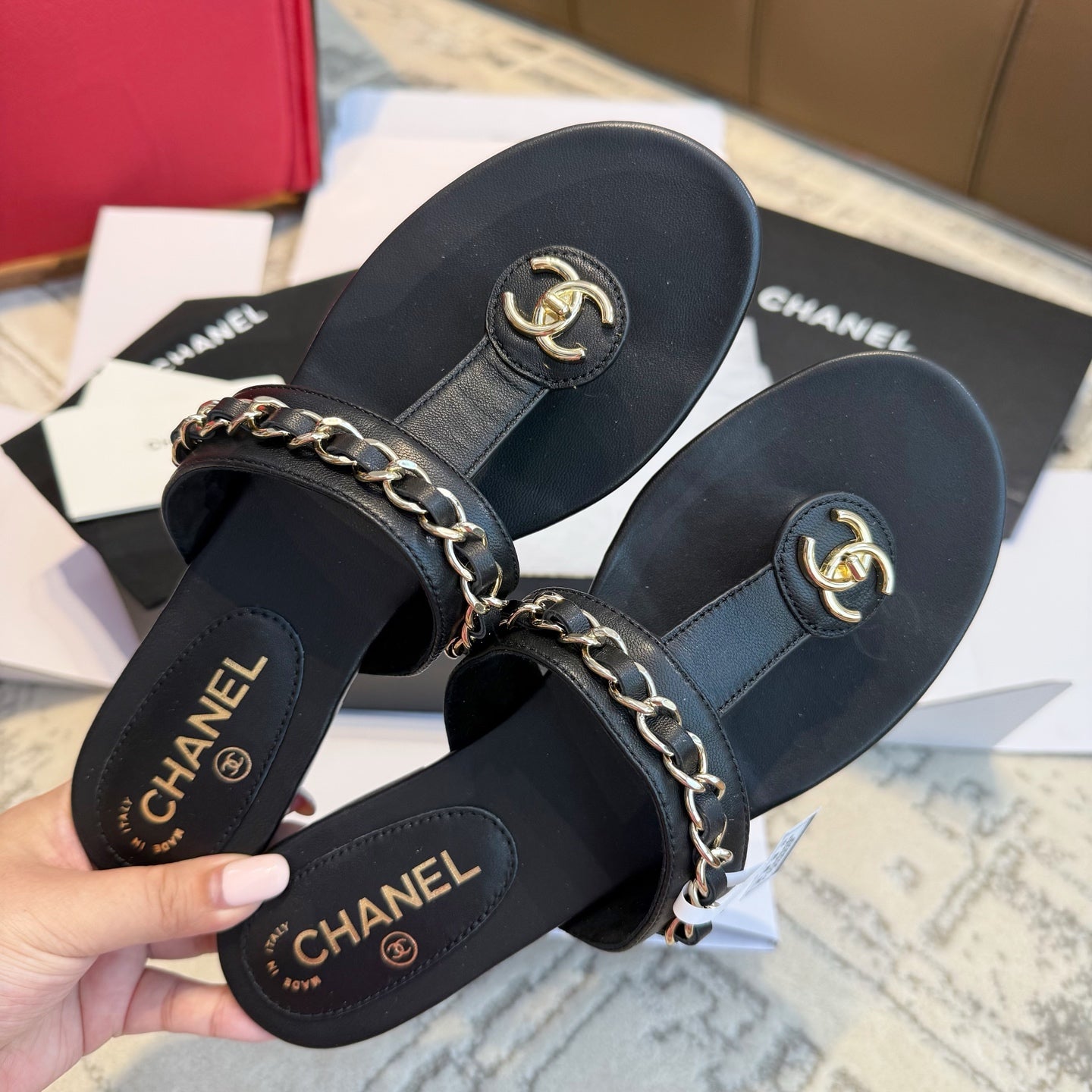 CC 25SS Thong Sandal 2cm Leather Chain Black Lambskin 319700