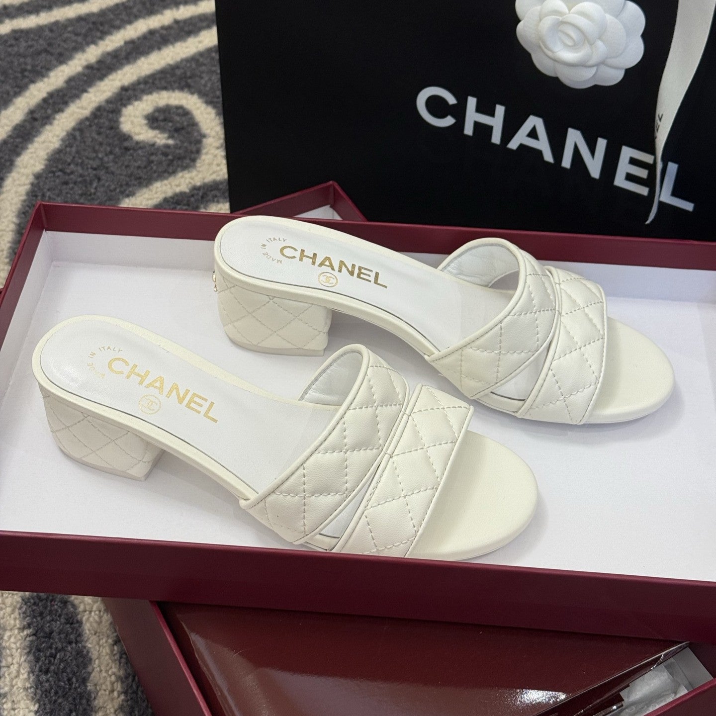 CC 25SS Honey Slippers 5cm White Lambskin 319637