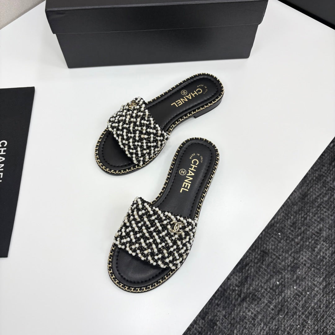 CC 25 Mules Flat Pearl Cord and Lambskin 270770