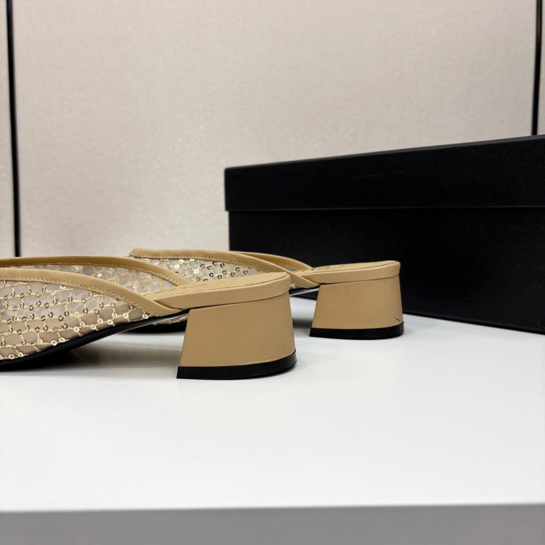 CC 25 Mule 40mm Beige Mesh Beige Sheepskin Black Grosgrain 277724
