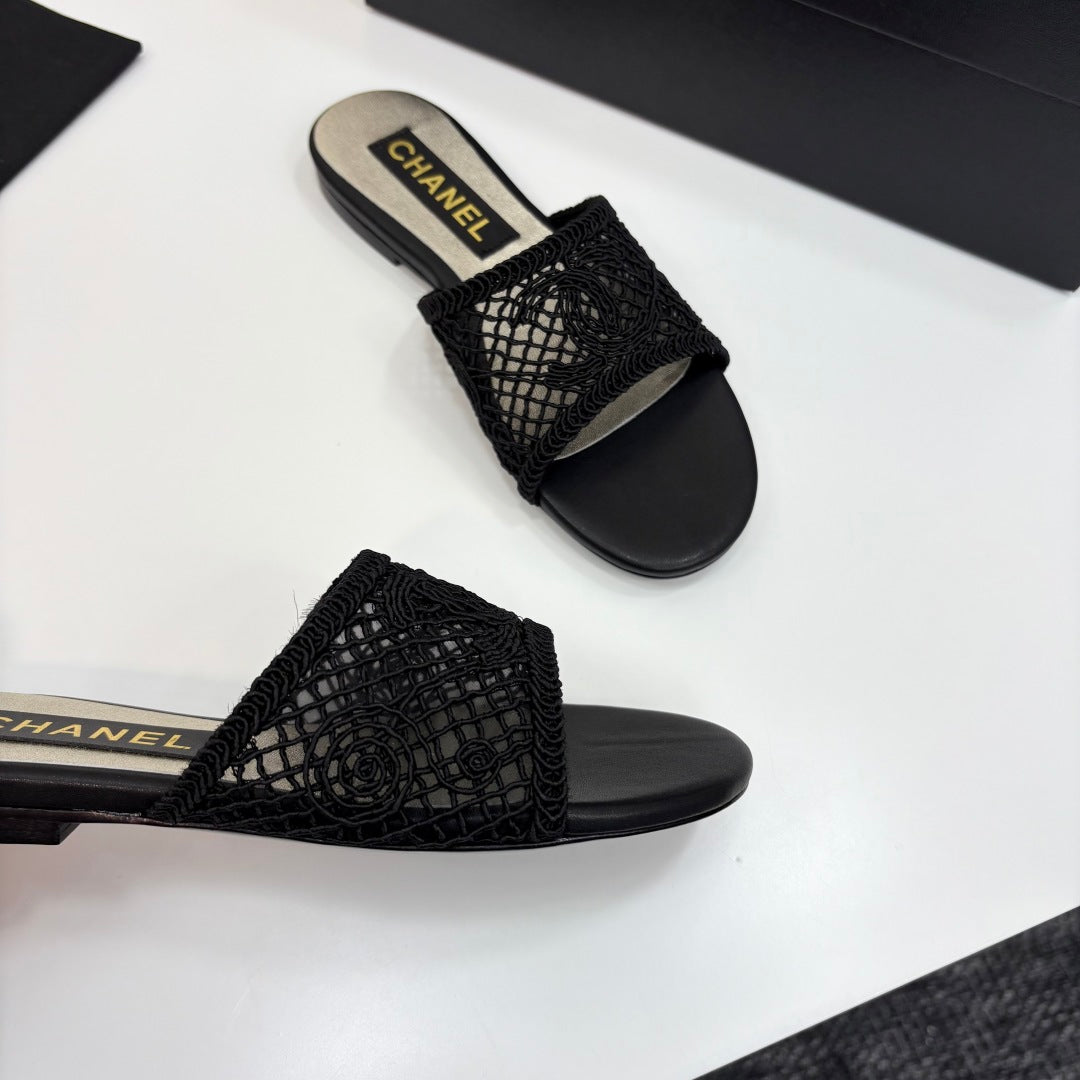 CC Mesh Hollow Chain Double C Thick-Soled Slippers 70mm Black 265651