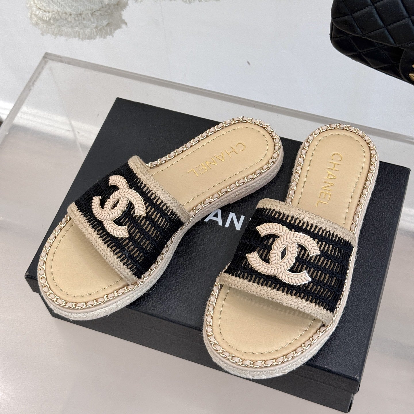 CC Mesh Hollow Chain Double C Thick-Soled Slippers 20mm Beige Black 265646