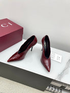 GG 25Ss Crocodile Pattern Pointed Toe High Heels Burgundy Leather 511496
