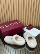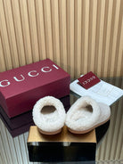Gucci 2025 Horsebit Embossed Mule Cream Suede And Wool 563038