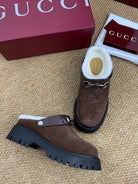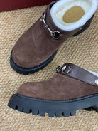 Gucci FW 25 Horsebit Suede Clog Brown Suede with Shearling 506448