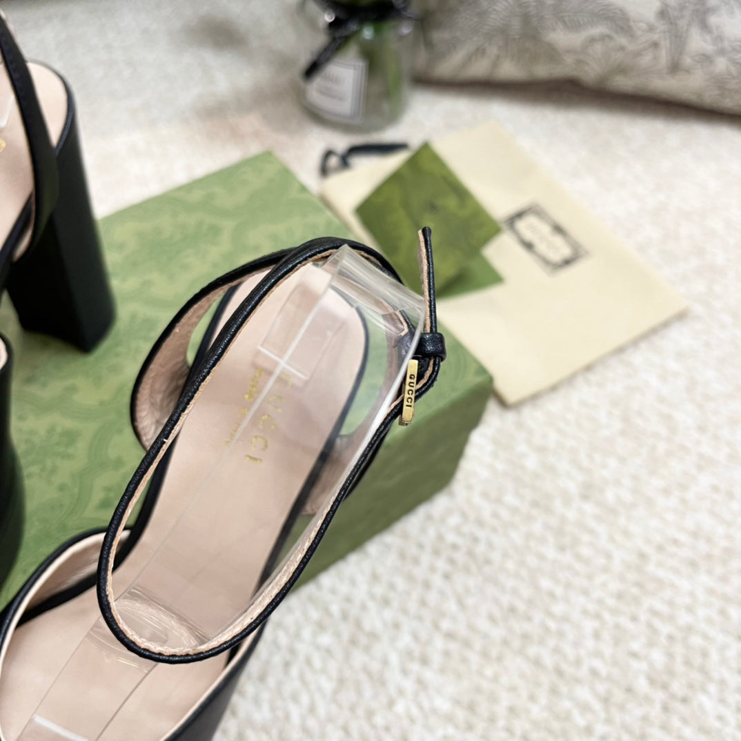 Horsebit 11cm Platform Sandal Black Calfskin