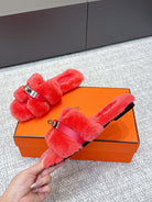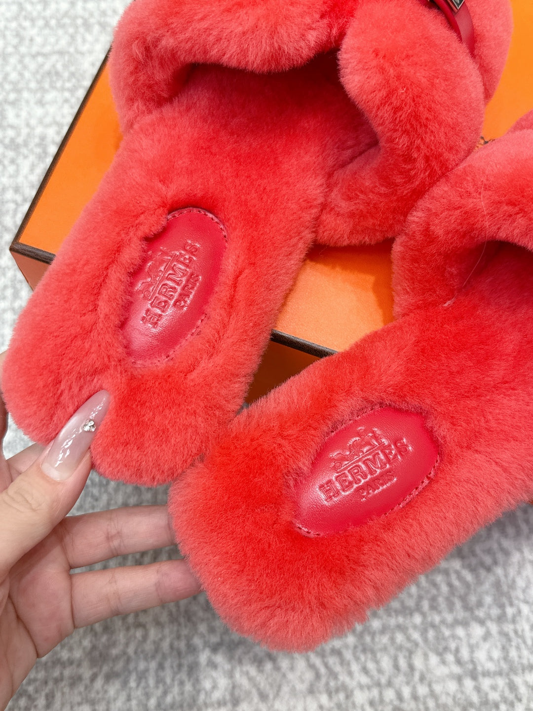 HM 25s H Shaped Slipper with Buckle Red Shearling 462198