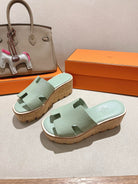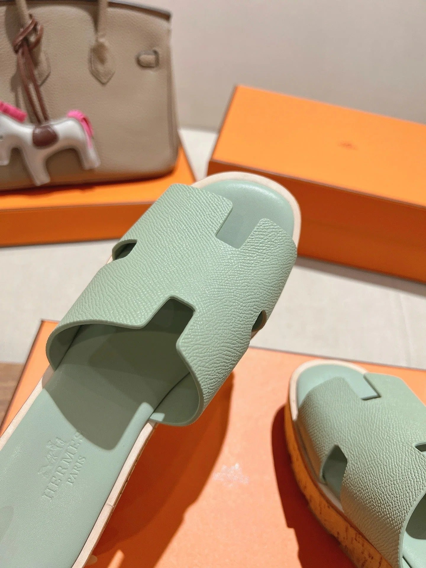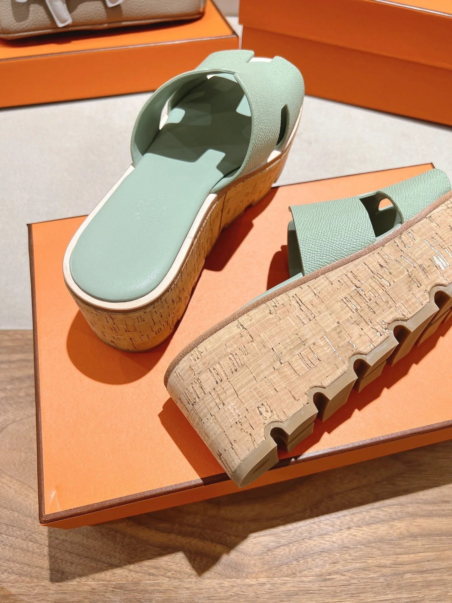 HM 25S HIGH WEDGE SANDALS IN SOFT MINT GREEN LAMBSKIN STYLE 28