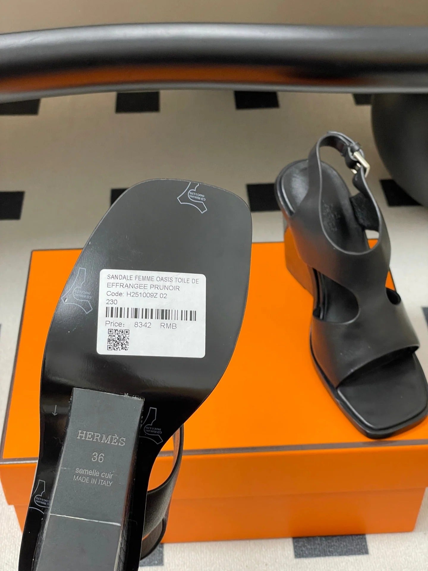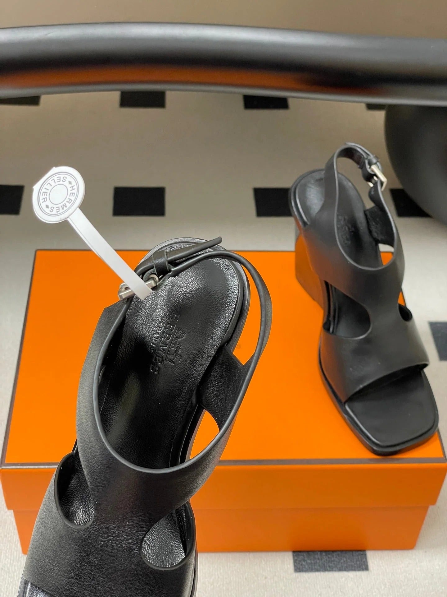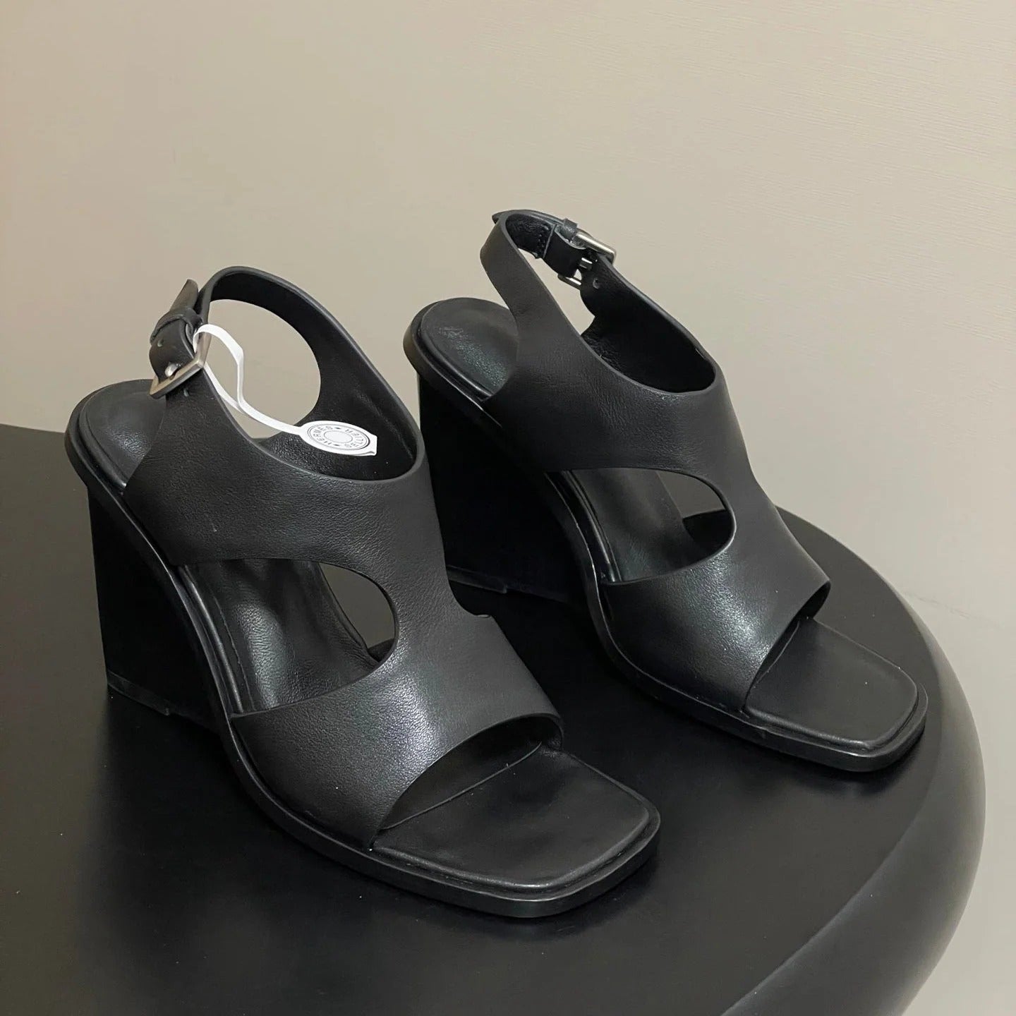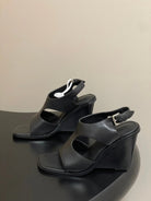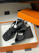HM 25S KALYA WEDGE SANDAL 100 MM IN BLACK LAMBSKIN