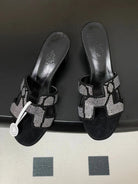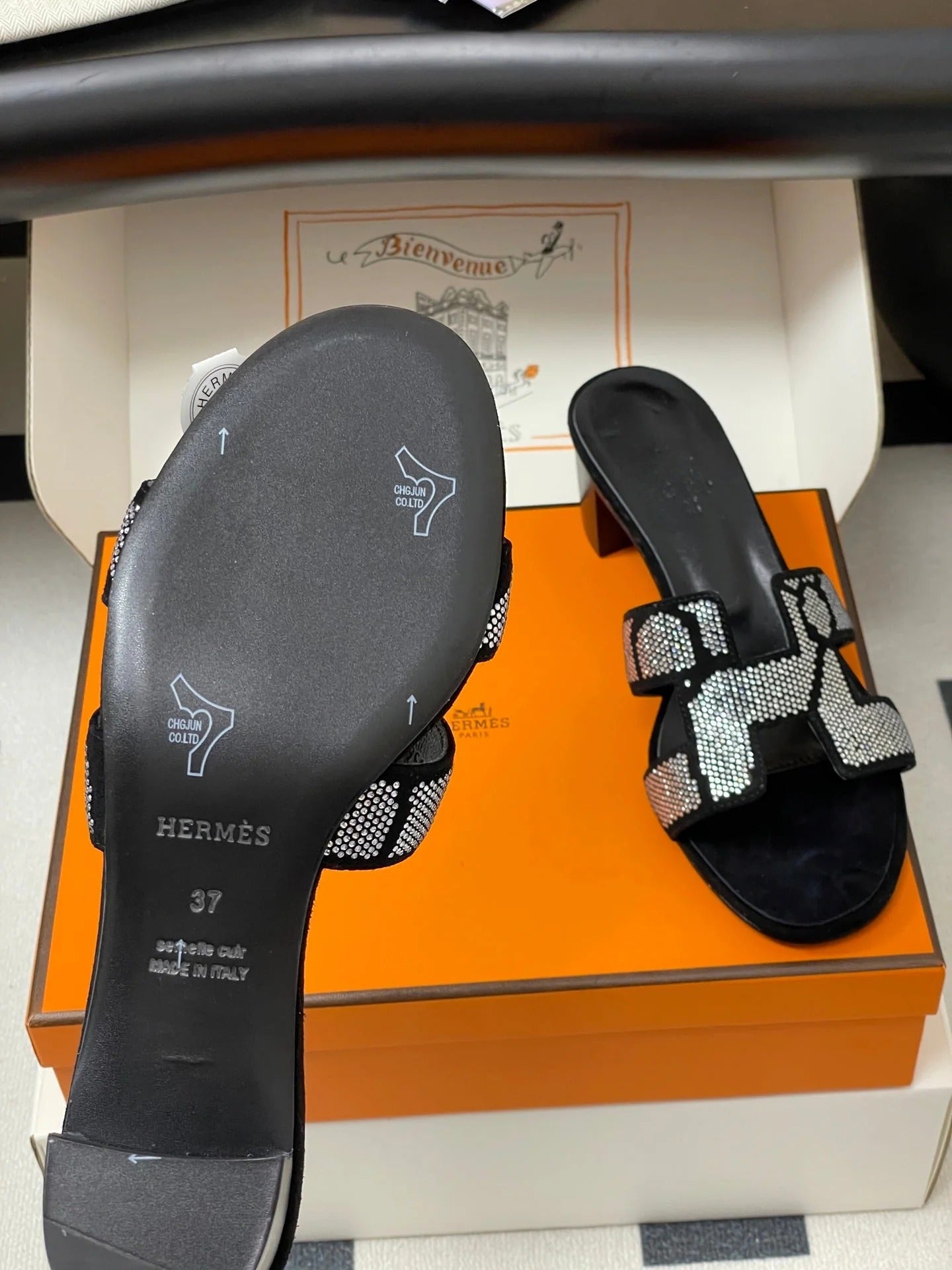 HM 25S ORAN HIGH‑HEEL SANDAL 50 MM IN BLACK LAMBSKIN WITH WHITE STONE DETAILS