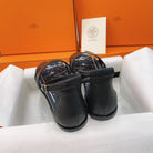 HM Flat Sandals Black Cowhide 348048